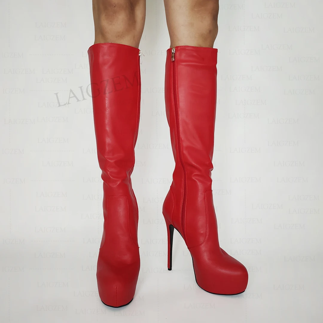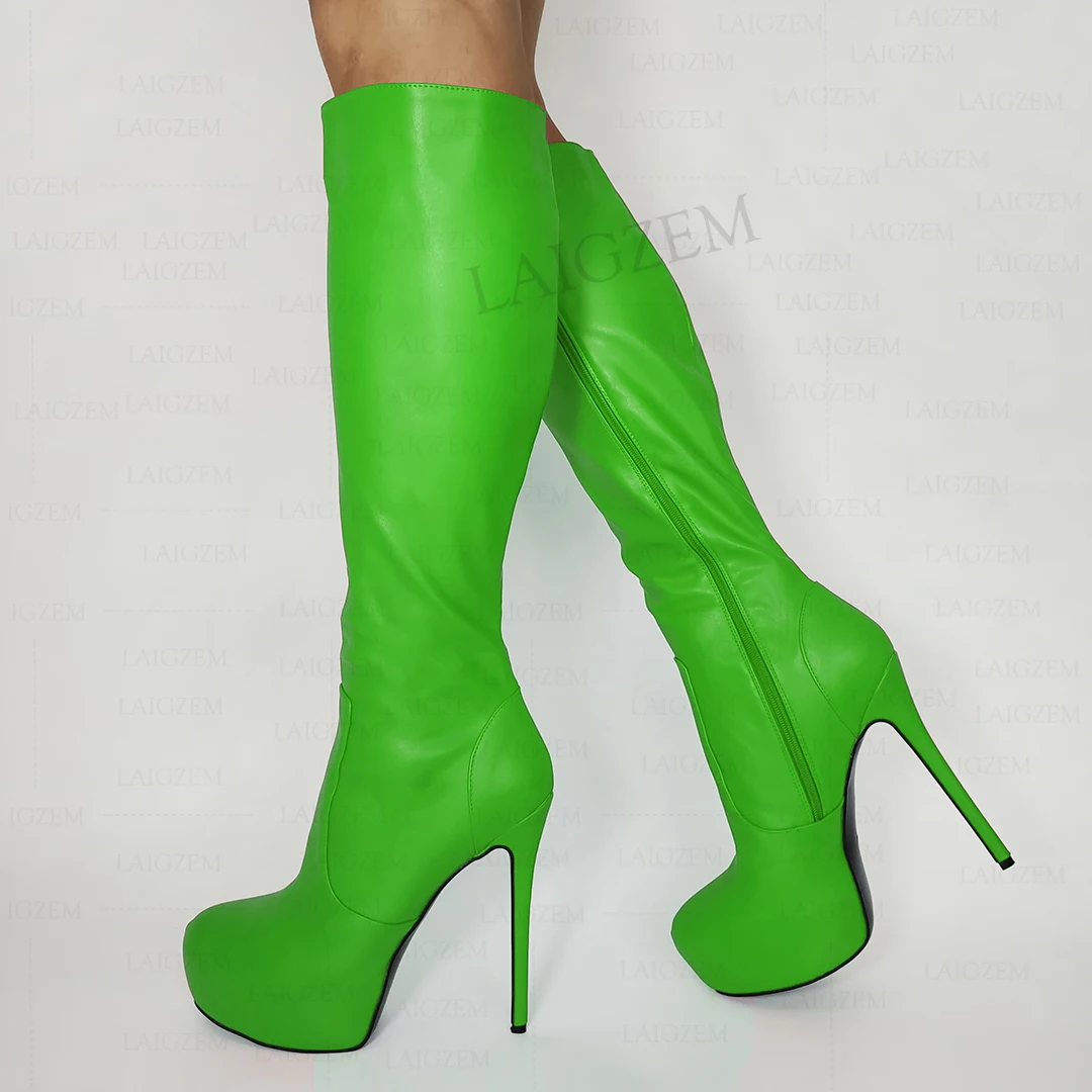 BERZIMER/женские сапоги до колена на платформе; Высокие сапоги на высоком каблуке-шпильке с молнией; Обувь из искусственной кожи; Женская обувь; Большие размеры 41, 45, 52