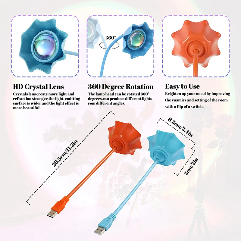 Лампа в виде заката, ауры, радуги, Луны, для дома, спальни, Селфи, Tiktok, Рождественское украшение, портативный проекционный светильник, Usb