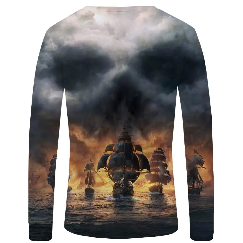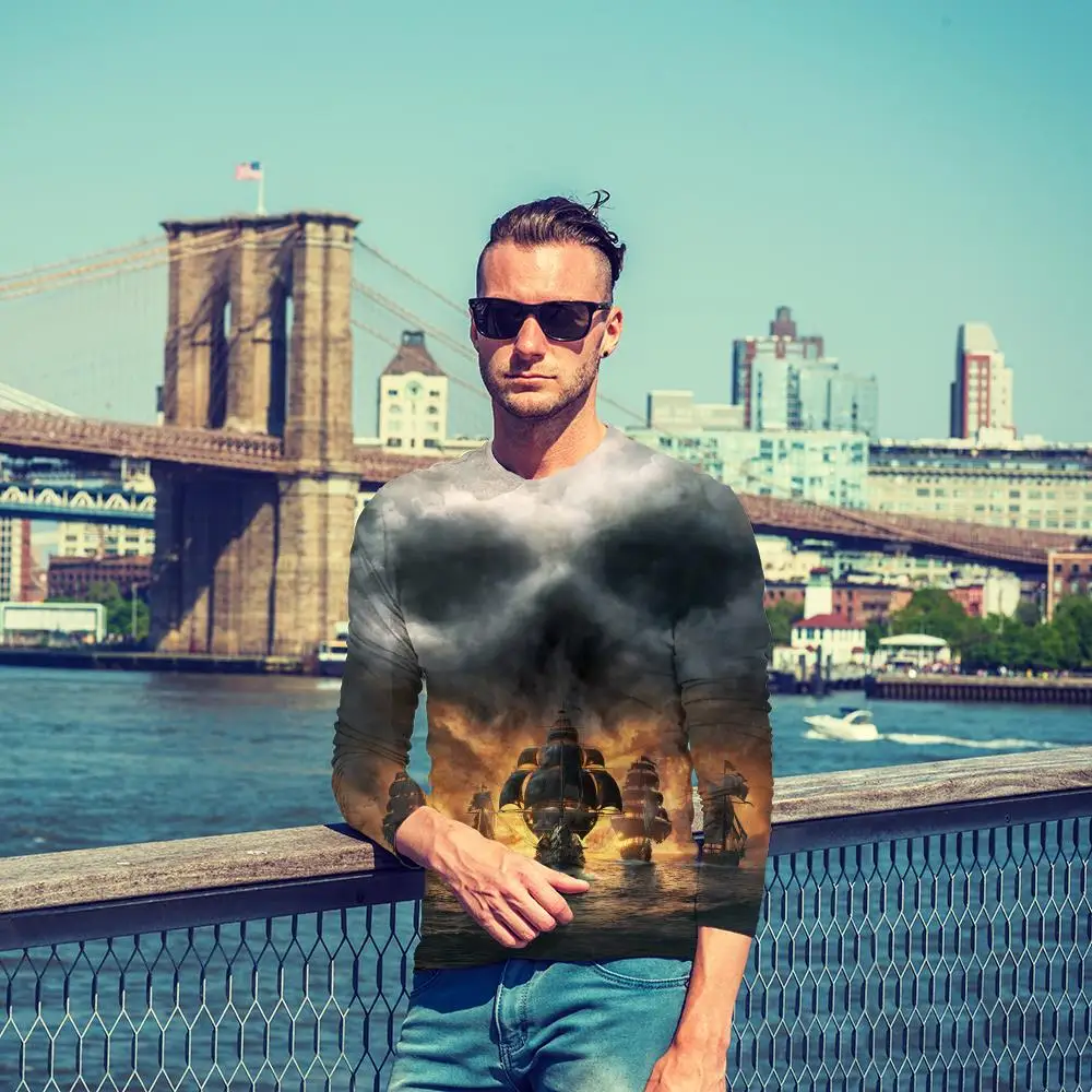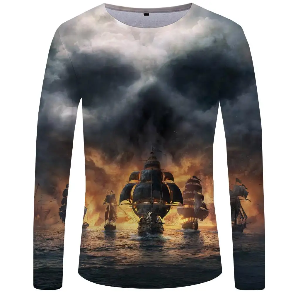 Футболка мужская с длинным рукавом KYKU, летняя футболка с 3D-принтом