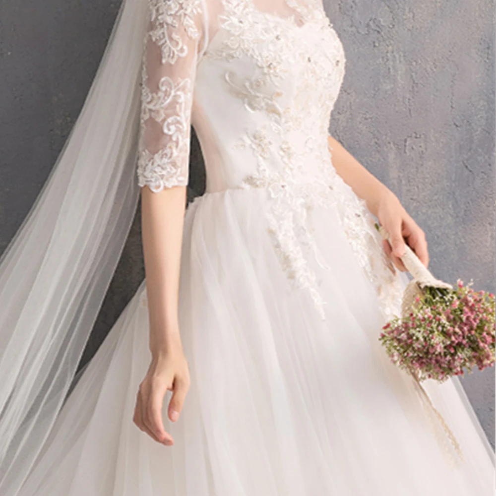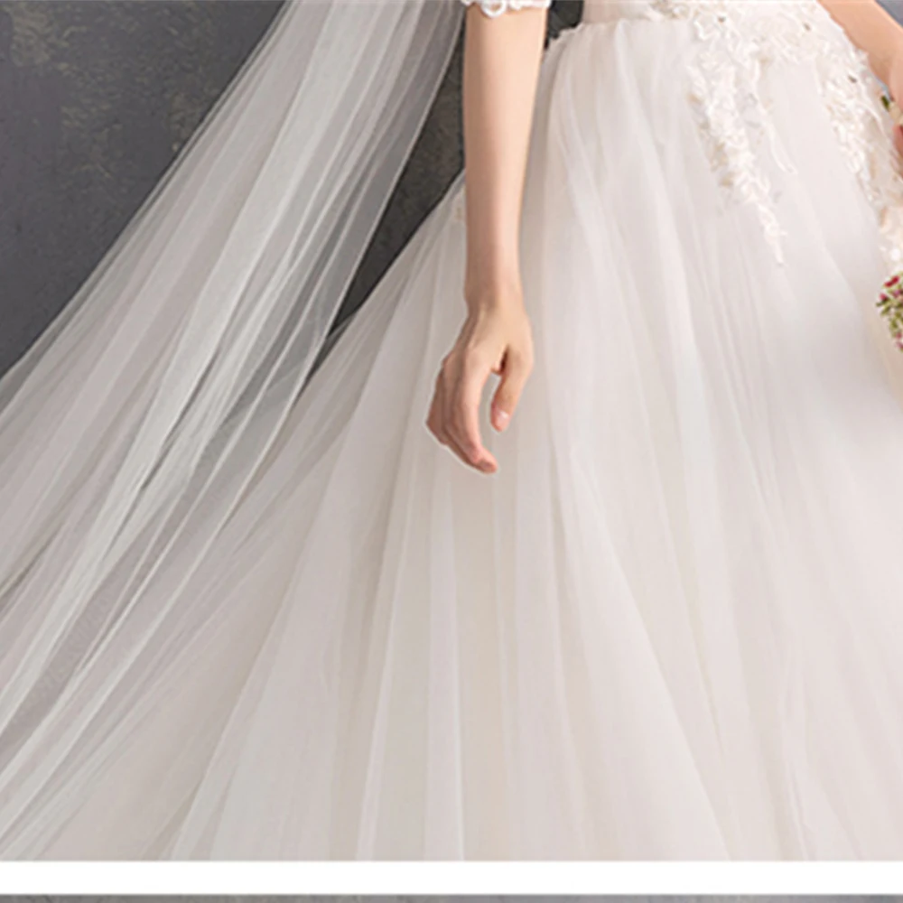 Женское свадебное платье принцессы Dioflyusa, фатиновое платье с вышивкой и круглым вырезом, с бусинами и блестками, свадебное платье на шнуровке с коротким рукавом