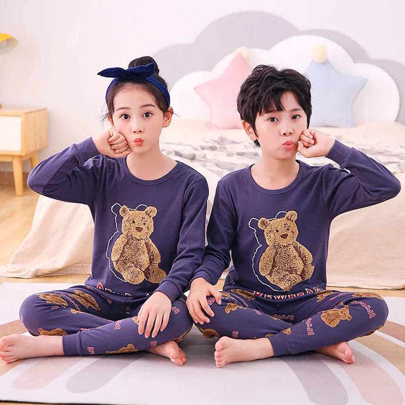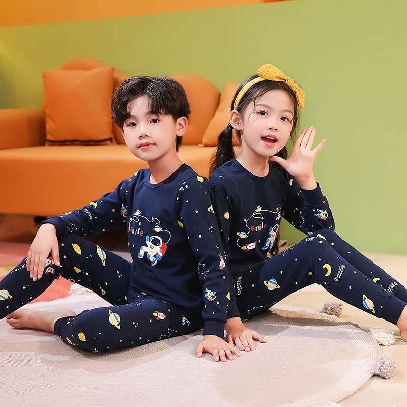Детские пижамы из 100% хлопка, пижама с астронавтом для подростков 4, 6, 8, 12 лет, зимняя одежда для мальчиков, комплекты одежды с длинным рукавом для маленьких девочек