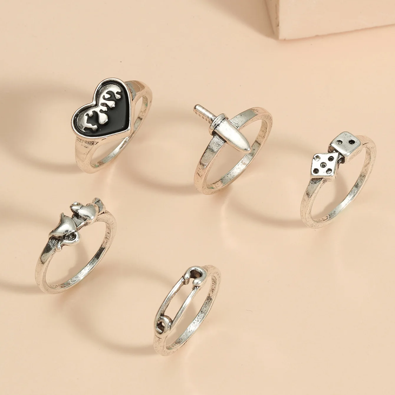 Набор колец для женщин в стиле панк, 5 шт., в Европейскомамериканск...