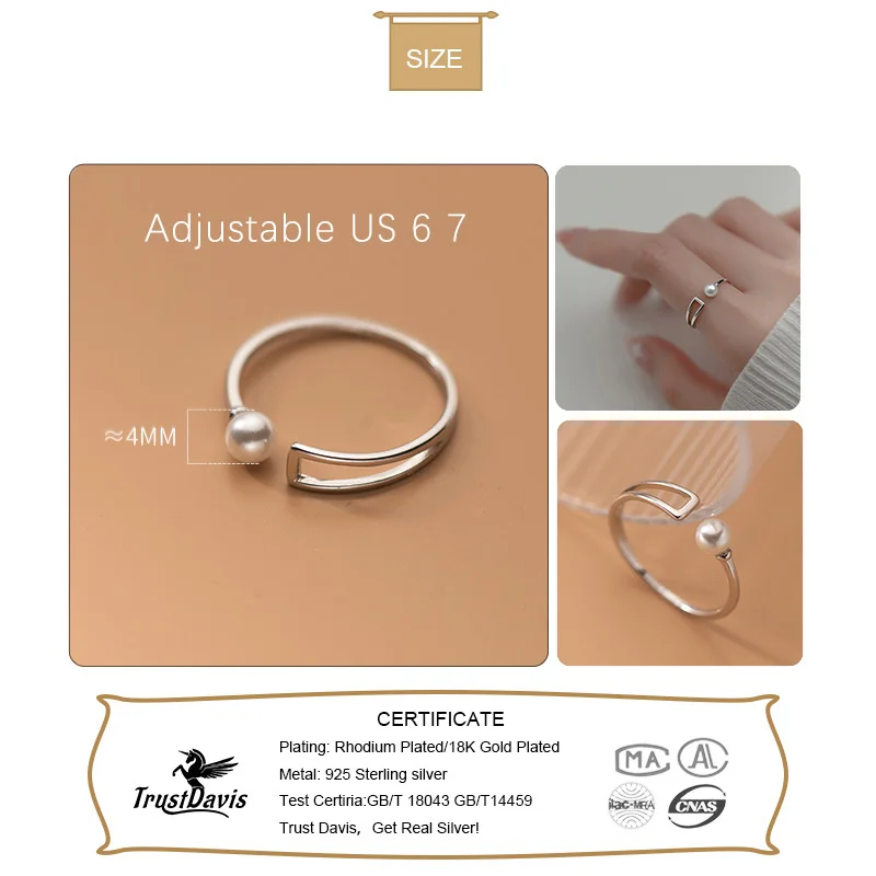 TrustDavis Настоящее серебро 925 пробы модное глазурное Открытое ко...