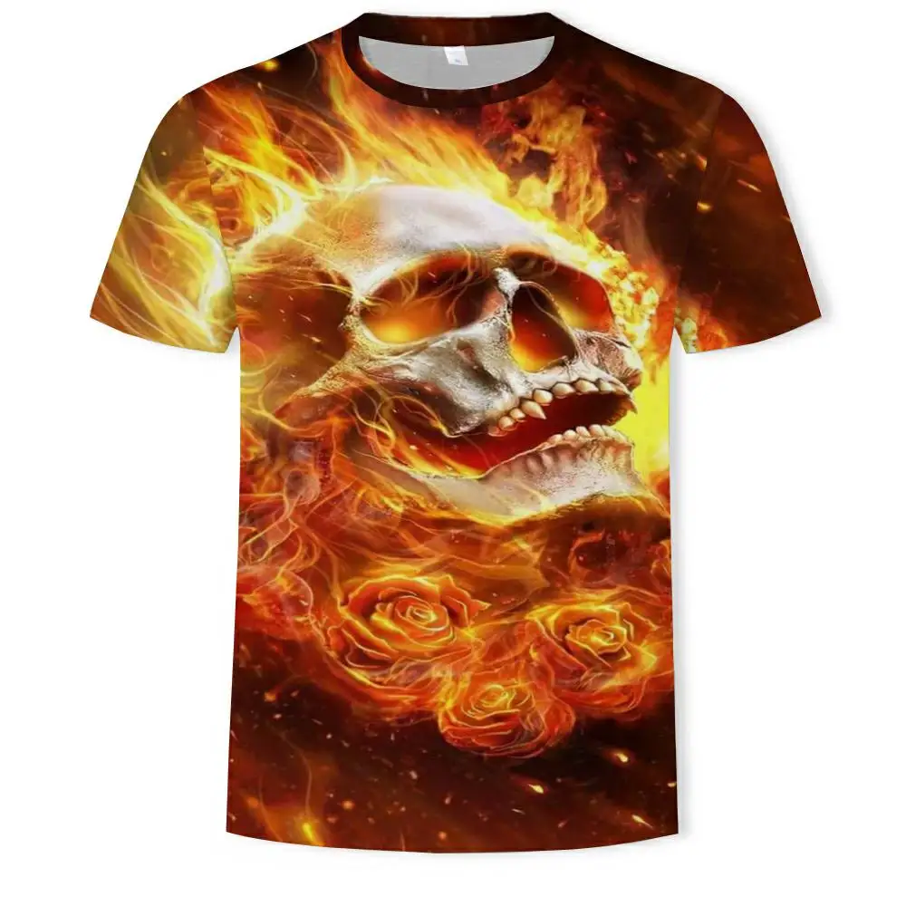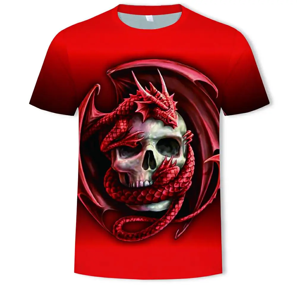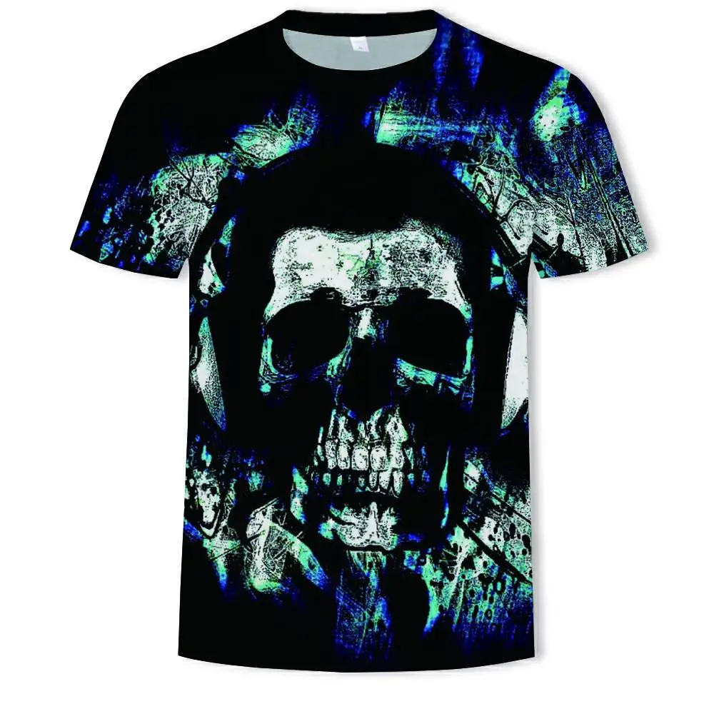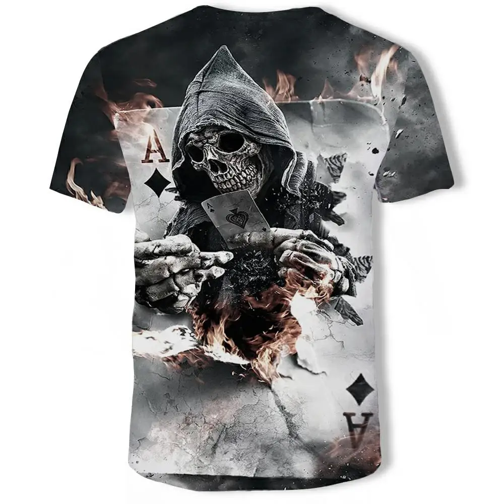 Летняя новая мужская футболка с 3D черепом и покером, модные топы с коротким рукавом, уличная футболка с круглым вырезом, Повседневная футболка унисекс