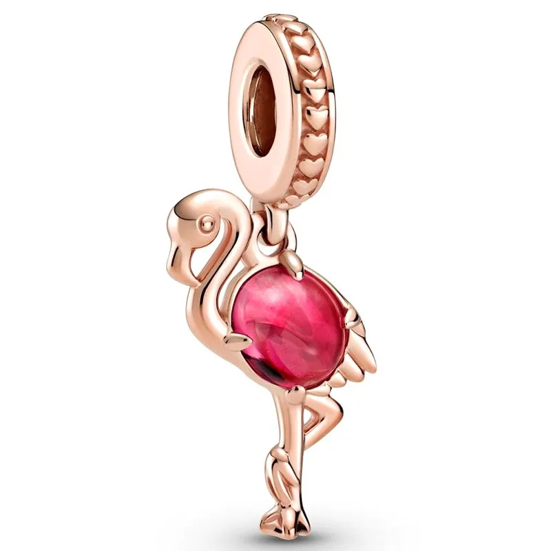 Подвеска из серебра 925 пробы в виде розового фламинго, яблока, рыбы