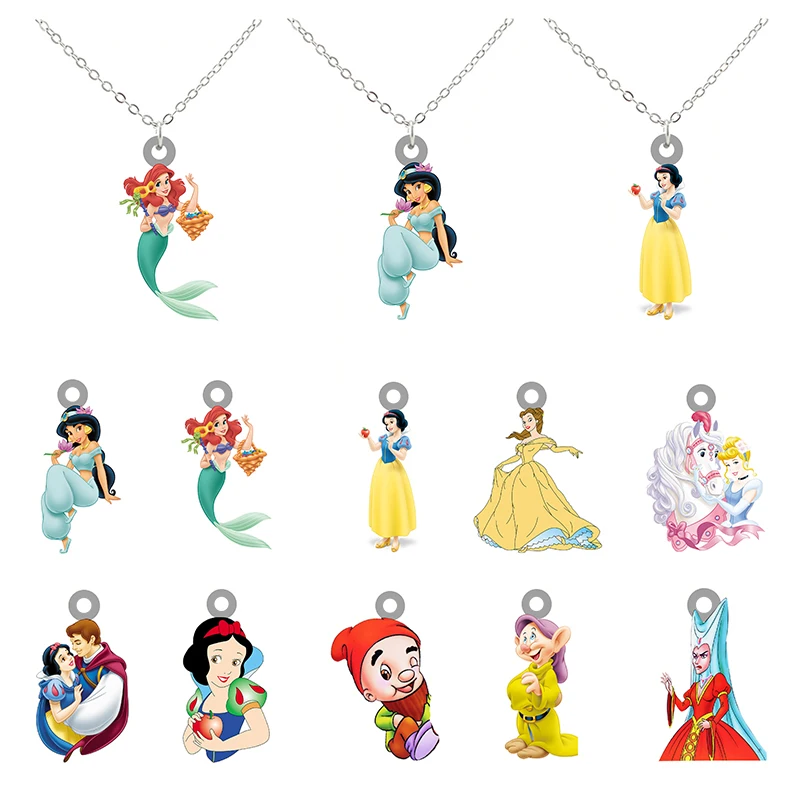 Акриловые ожерелья Disney с героями мультфильмов, подвески в форме персонажей мультфильмов для принцесс, ожерелье из эпоксидной смолы, вечерние ювелирные изделия для девочек, FGZ67Фотографии товара: