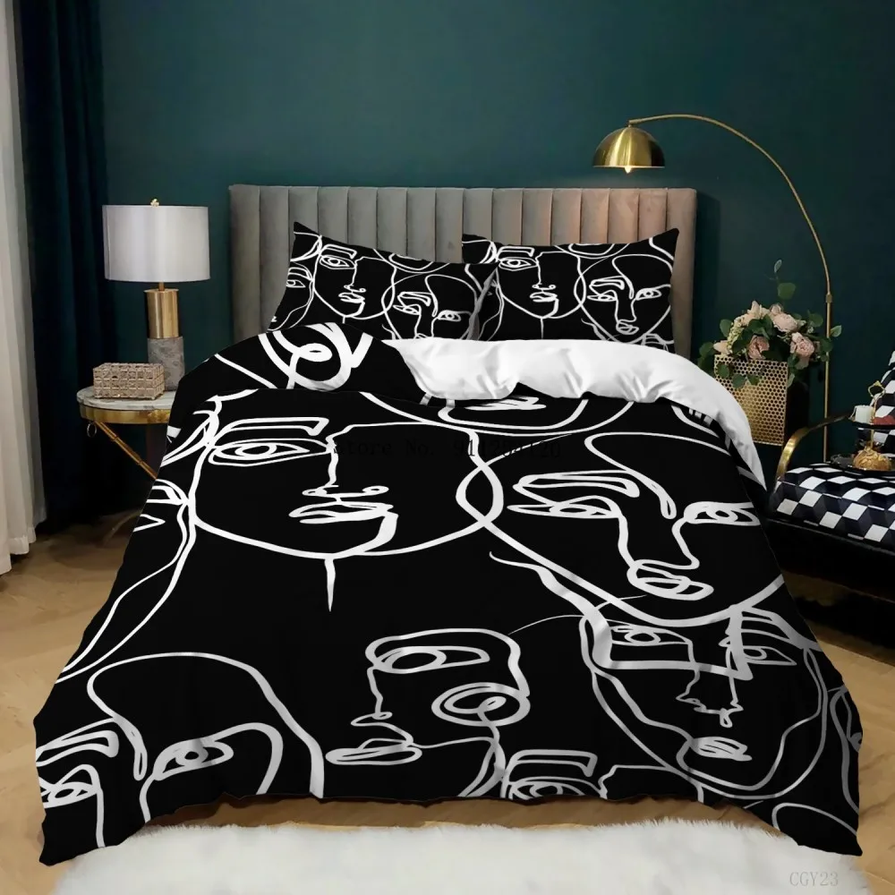 Женский комплект постельного белья, черно-белый комплект постельного белья из 23 предметов с абстрактными линиями, пододеяльник, односпальный, двуспальный, Королевский размер, постельное белье с принтом