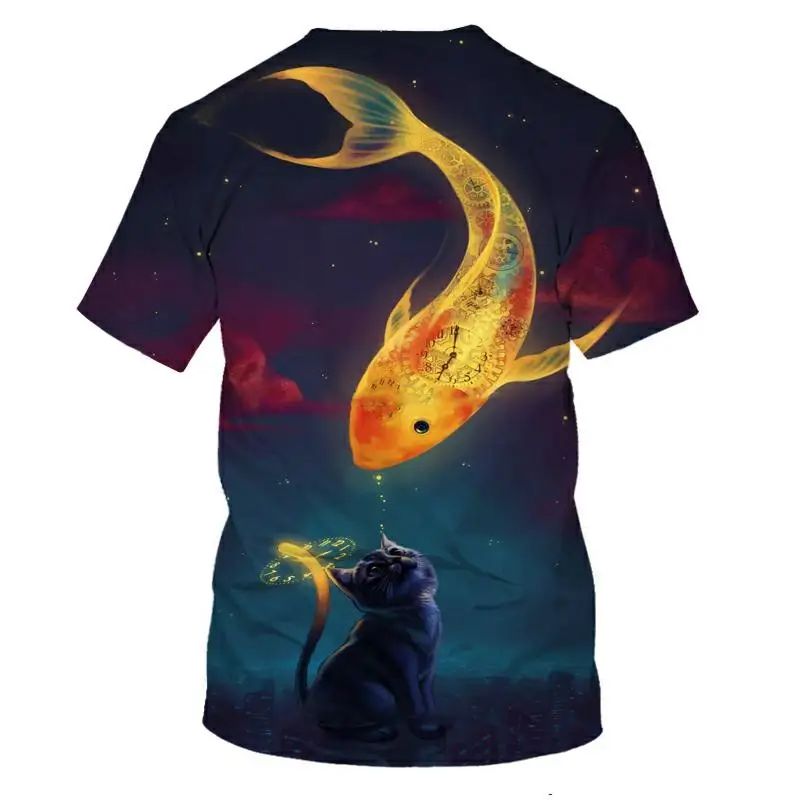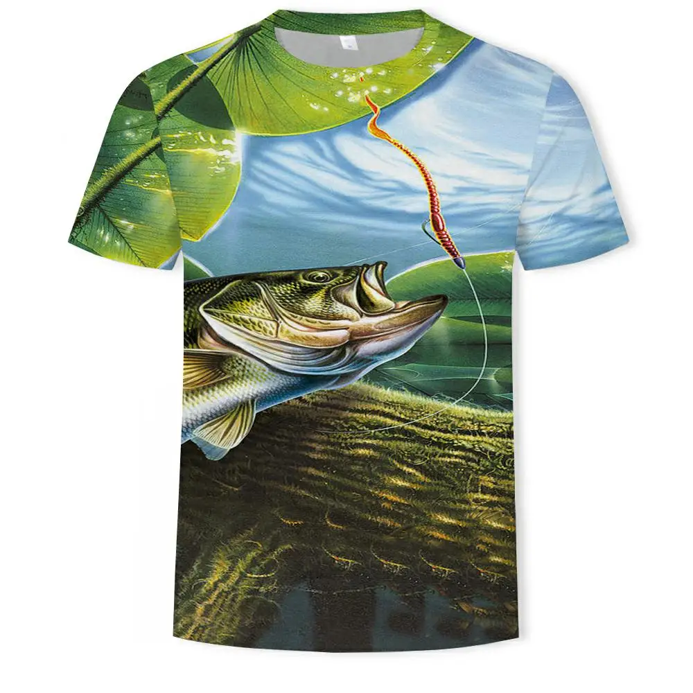 Футболка мужская с объемными рыбками, повседневная тенниска в стиле хип-хоп, забавная майка в стиле хип-хоп, новая приталенная рубашка с искусственными рыбками, с животными
