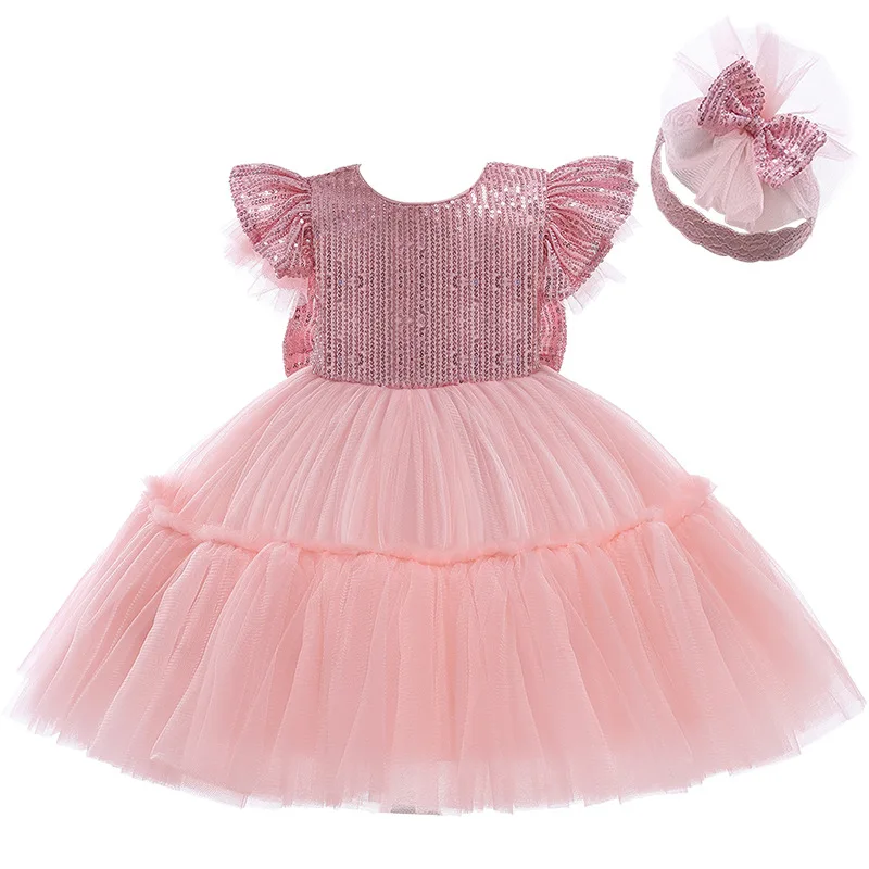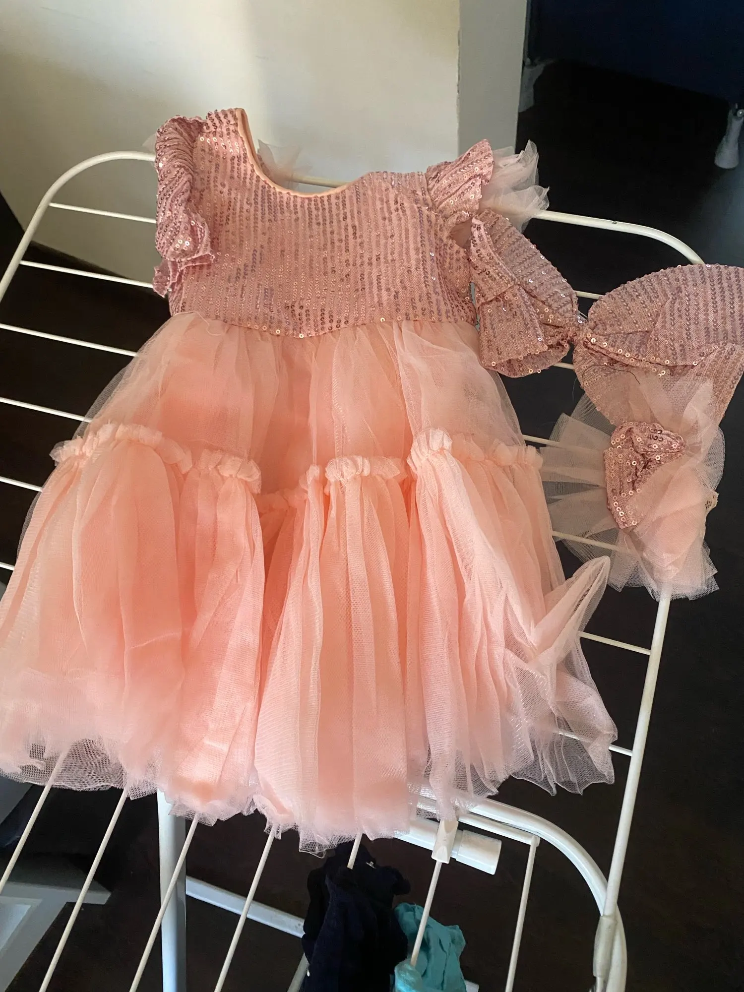 Детское платье с бантом и блестками, на возраст 2-3 года