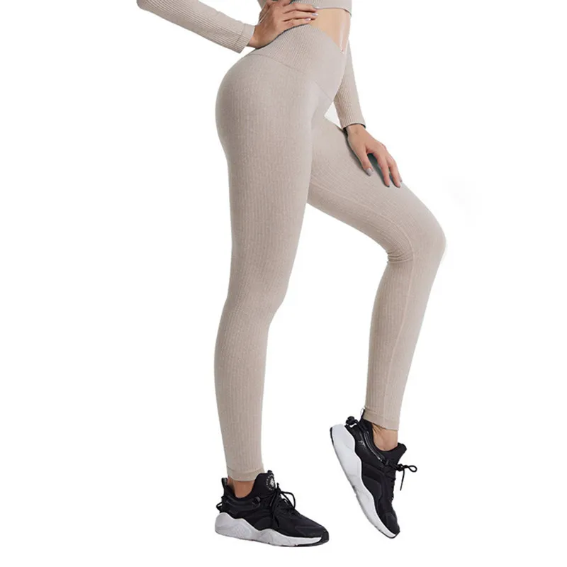 Бесшовные леггинсы с высокой талией, комплект для йоги, спортивный ...