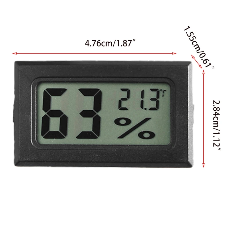 Мини маленький цифровой электронный измеритель температуры и влажности Датчик комнатный термометр гигрометр ЖК-дисплей беспроводнойOOTDTYОсобенности на 100% абсолютно новый и высокого качестваЕсть 4 типа, белый с Cel-sius белый с Fahren-heit, черный с Cel-sius, черный с Fahren-heit.Мини-размер идеально подходит для использования в инкубаторы, брудеры, сигары хьюмидоры, рептилия, Гитары чехол каких-либо другое место, где требуется наблюдение за температура и влажность уровнях.Цифровой термометр с ЖК-дисплеем позволяет легко узнать температуру окружающей среды и влажность вокруг вас.Расширенный датчик влажности и температуры поддерживает точность до ± 1%; Диапазон температур: -58 °F ~ 158 °F(-50 ℃-70 ℃); Диапазон измерения влажности: 10% RH ~ 95% RH.Быстрый ответ, который измеряет каждые 10 секунд с 4 чувствительными вентиляционными отверстиями для обеспечения обновленного и точного чтения.Спецификация: Материал: АБС-пластикРазмер: 4.76x2.84x1.55 см/1,87x1,12x0,61 дюймовТемпература тест точность: ± 1,0 ℃Период выборки температуры: 2 секундыДиапазон тестирования относительной влажности: 20% - 90%Разрешение дисплея влажности: 1%Точность теста на влажность: ± 5% (при комнатной температуре 25 ℃)Температура: -50-70 ℃ (измеренная температура ниже-50 ℃, отображение L O℃, когда температура выше 60 ℃, отображение H I℃)Посылка включает в себя: 1 Термометр-ГигрометрПримечание: возможны отклонения в 1-3 см вследствие измерений вручную. Пожалуйста, убедитесь, что вы не возражаете, прежде чем сделать ставку.Из-за разницы между различными мониторами изображение может не отражать фактический цвет изделия.