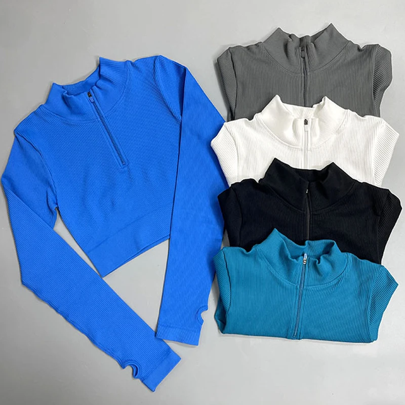 Женская спортивная одежда, бесшовный комплект для йоги, одежда для тренажерного зала, фитнеса, леггинсы на молнии с длинным рукавом и завязками с высокой талией, бесшовный спортивный комплект