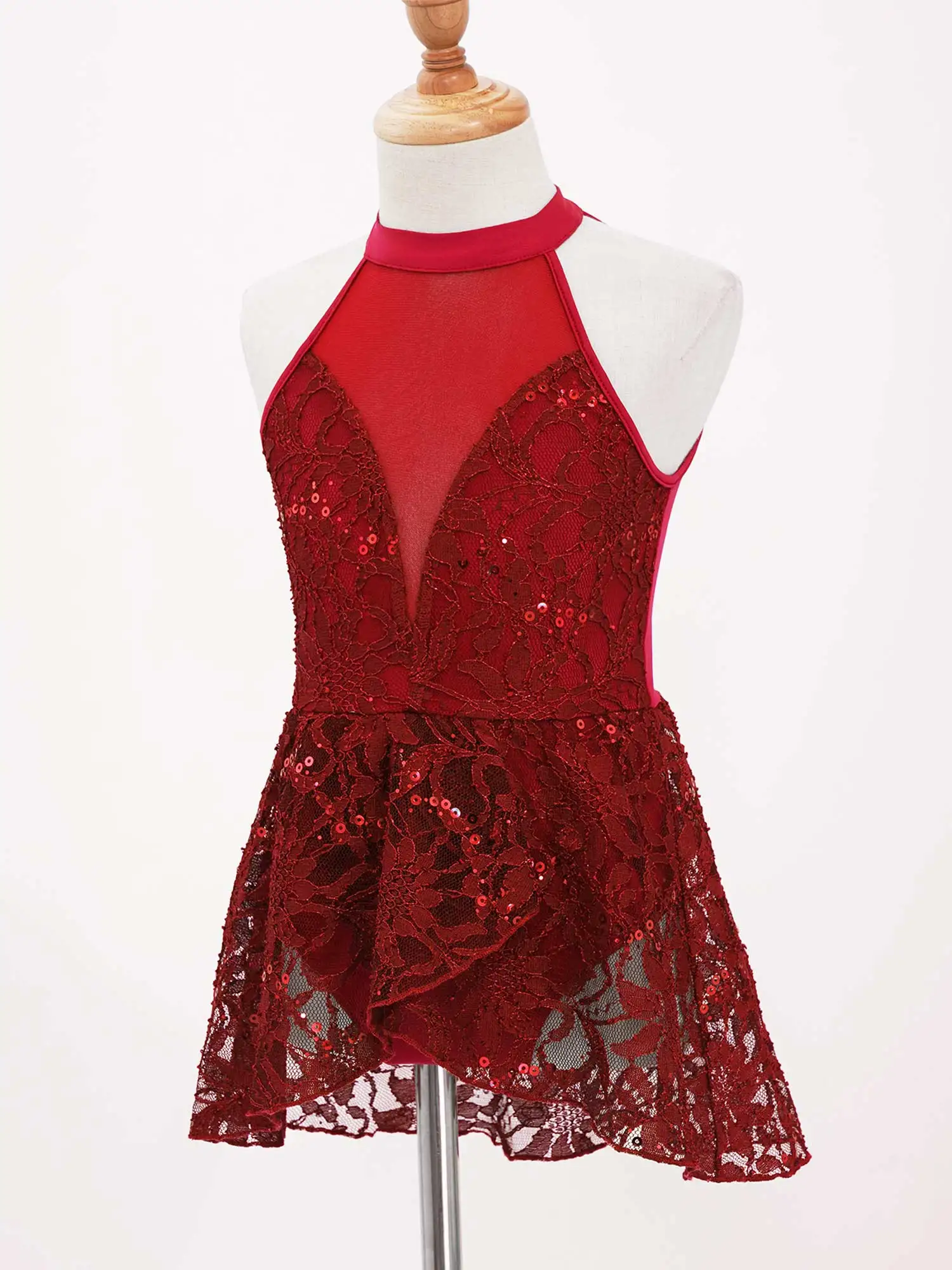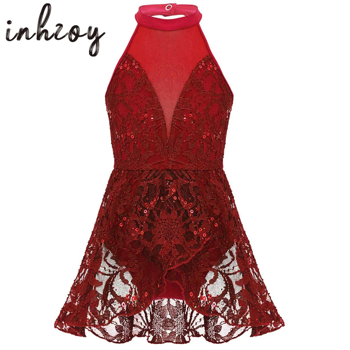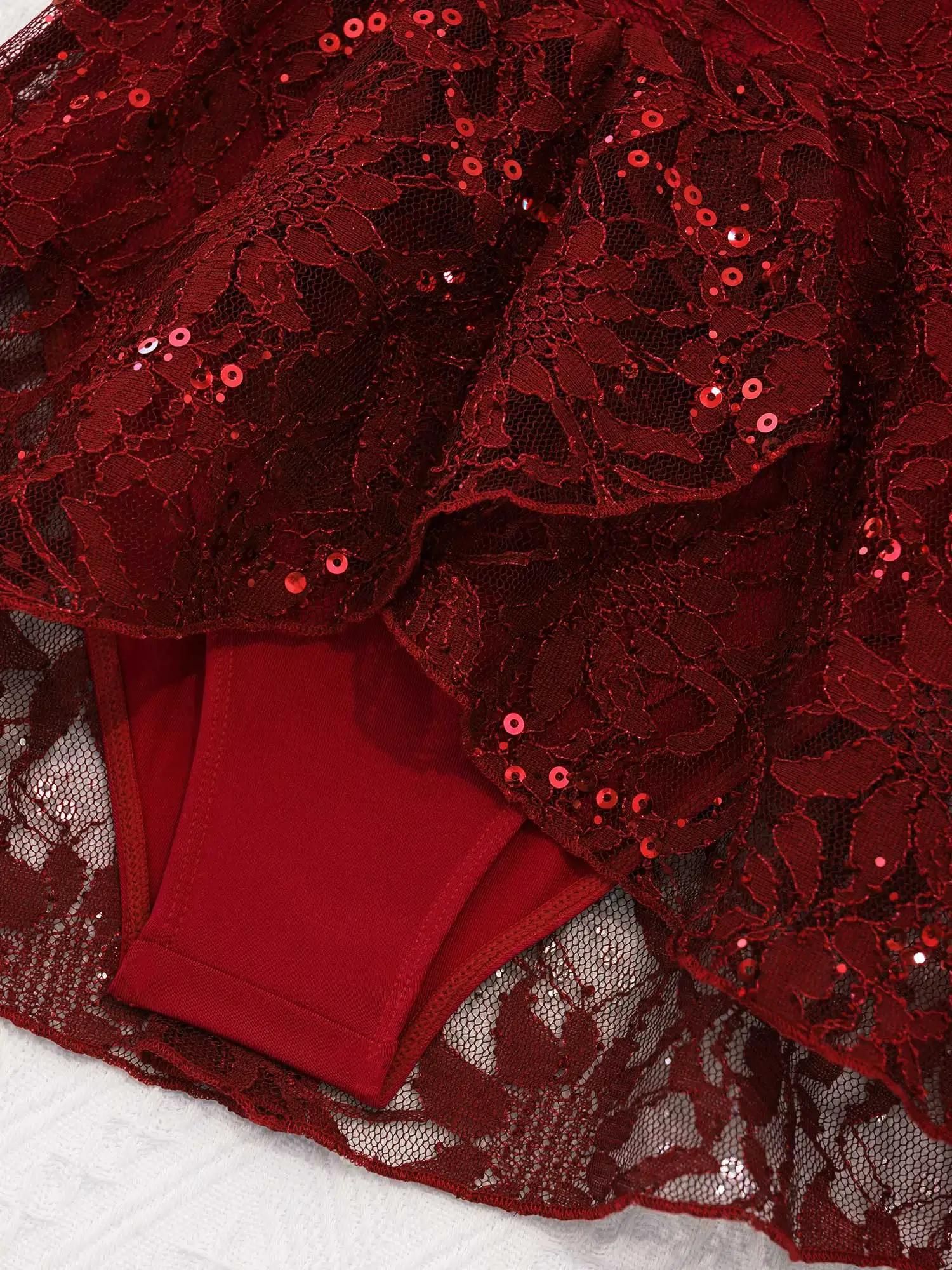 Платье для девочек, с блестками, кружевное, с юбкой, балетные гимнастические леотарды