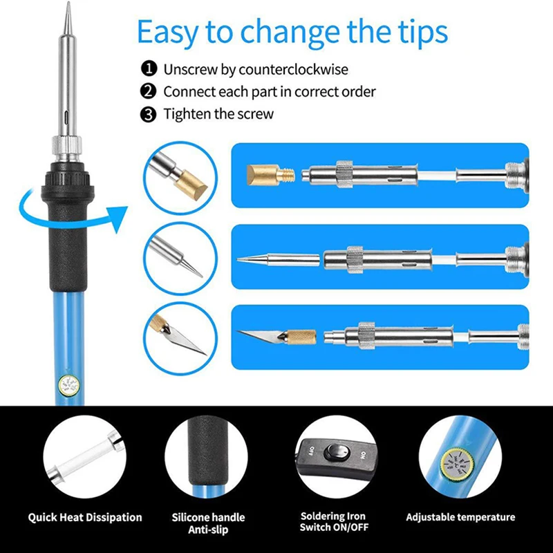 Паяльник Электрический с регулируемой температурой, 60 Вт, 110 В, 220 В набор для сварочных работ сварка припой пояльник с регулятором инструменты для ремонта жала для паяльников гравер выжигание по дереву Solder