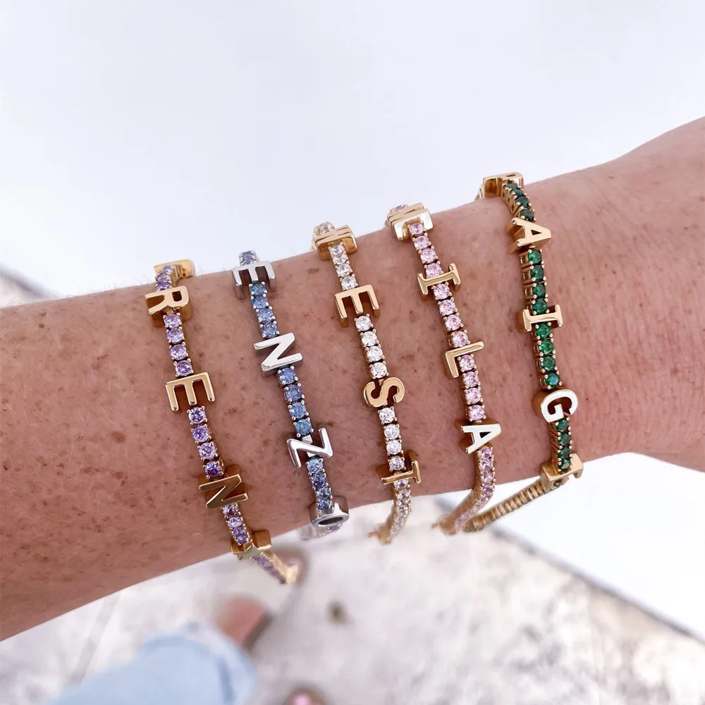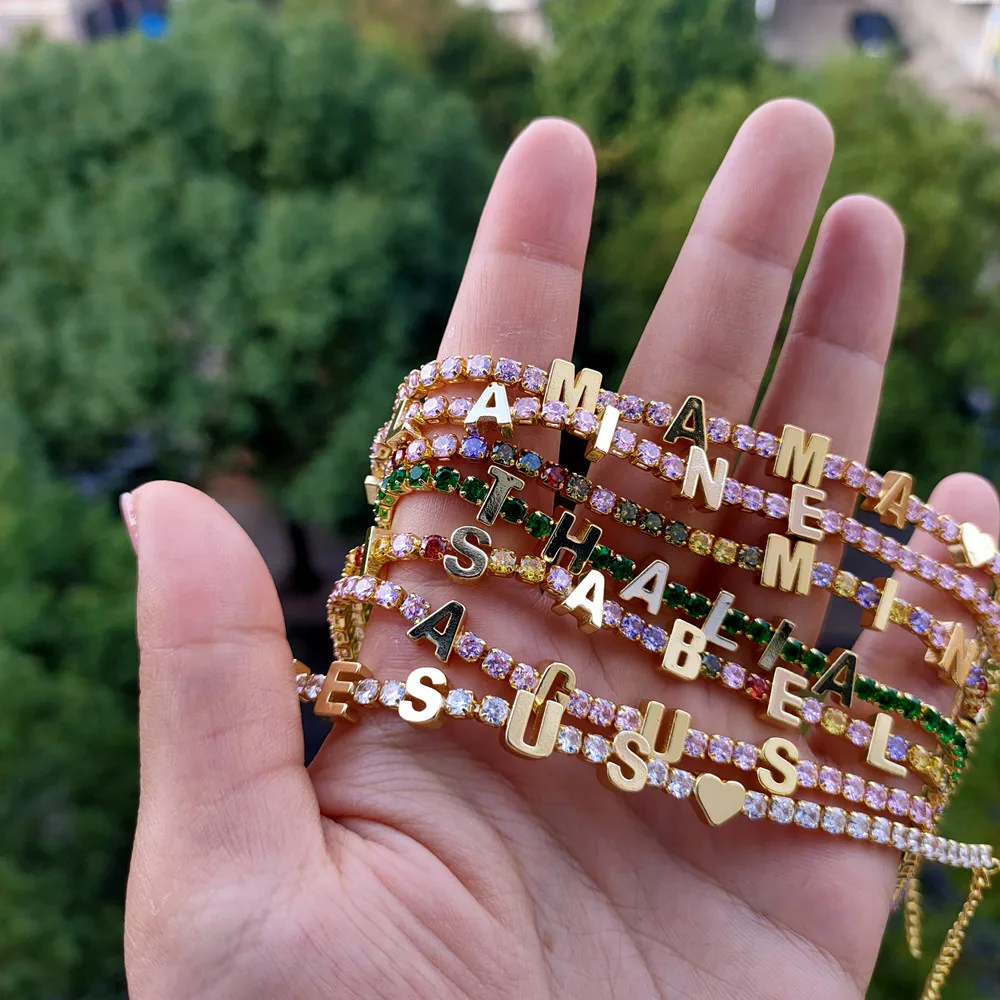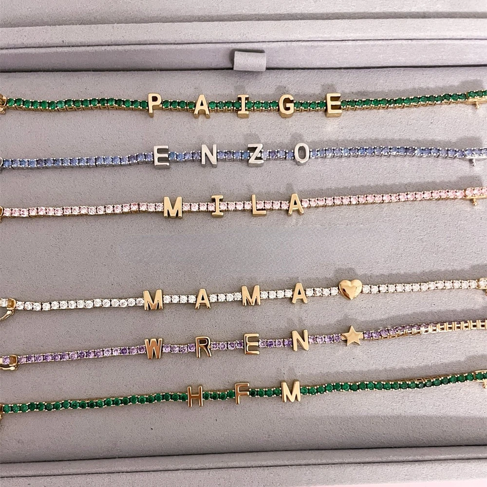 2021 NewA-Z персонализированный браслет с буквами на заказ, браслет-цепочка для тенниса, красочные циркониевые браслеты с именем, Женский изысканный Рождественский браслет