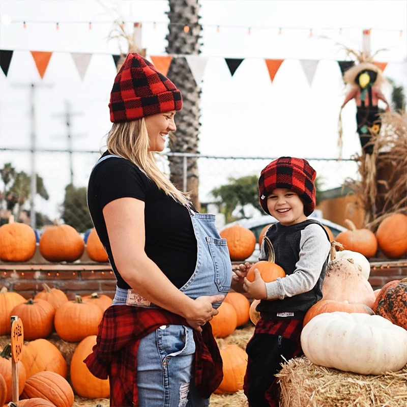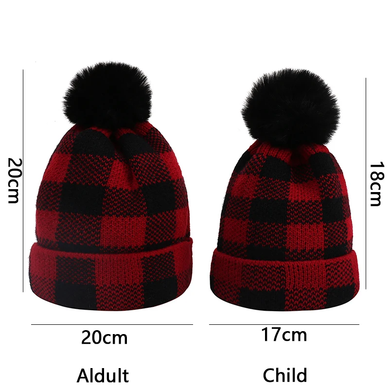 Вязаная шапка с помпоном для родителя и ребенка, Рождественская Лыжная шапочка в клетку, осенне-зимняя шерстяная теплая шапка, модная эластичная детская шапка «Мама и я»