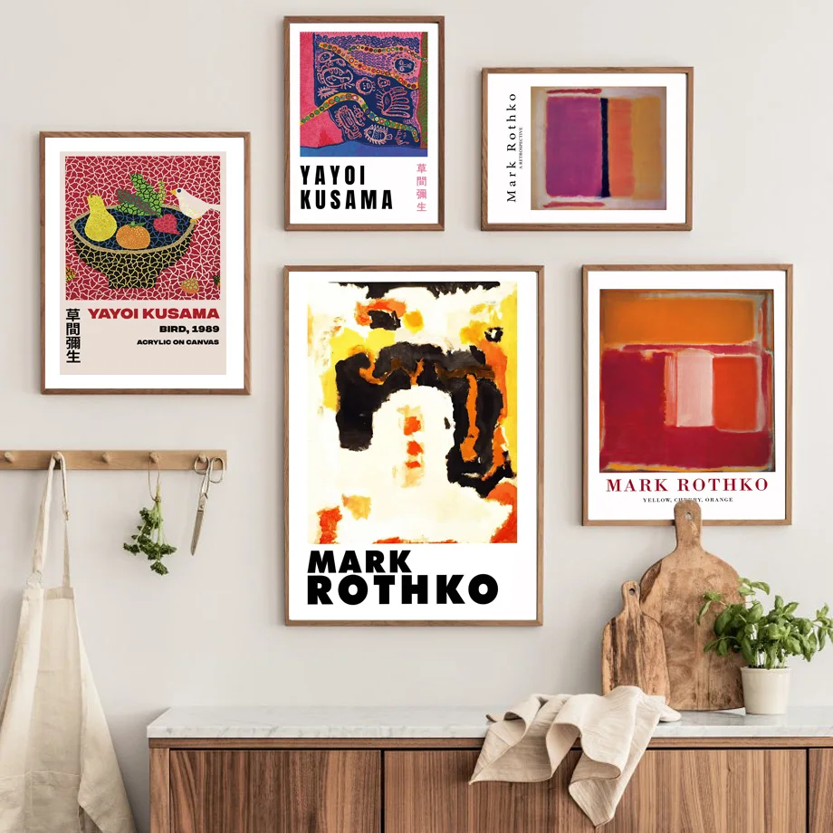 Mark Rothko Yayoi Kusama Абстрактные цветные блоки настенная живопись холст скандинавские постеры и принты Декор картинки для гостиной