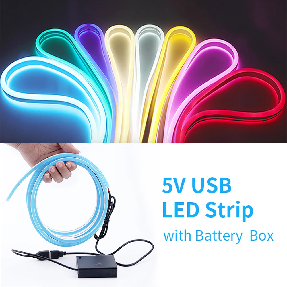 Светодиодная неосветильник лента, 5 в постоянного тока, 2835, 120 светодисветодиодный, sm, белая, теплая, белая, красная, зеленая, синяя, водонепроницаемая неоновая лента, Диодная лента с питанием от USBаккумулятора