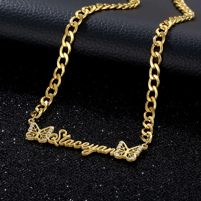 Ожерелья из нержавеющей стали под заказ для мужчин и женщин, кулон в виде бабочки с цирконом, Золотая кубинская цепочка 5 мм