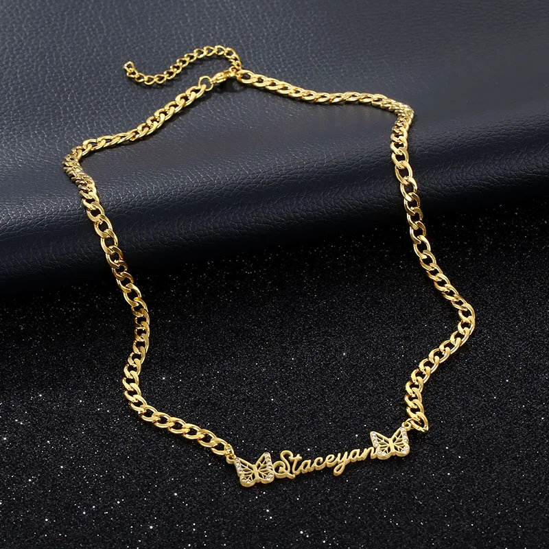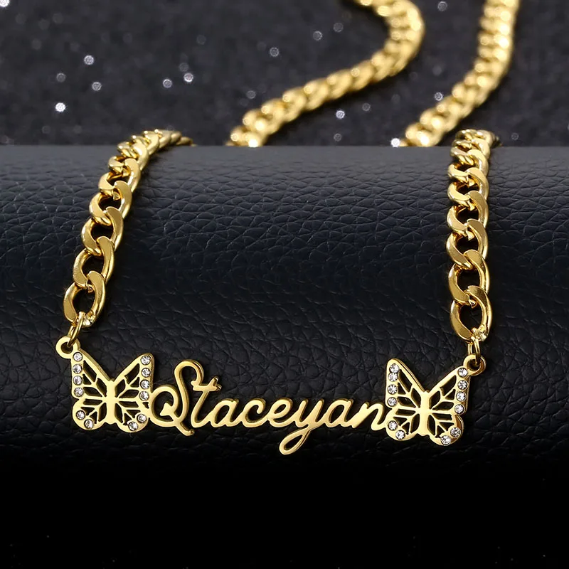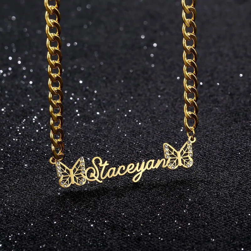 Feature/ShapeStainless Steel Personalized Custom Name Necklace With Butterfly