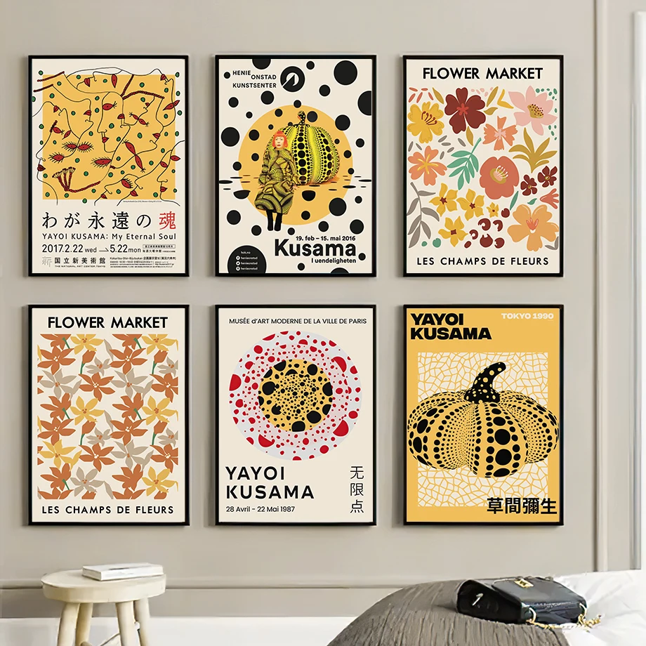Настенное художественное полотно, живопись Yayoi Kusama, тыква, вечная душа, точки формы, скандинавские постеры и принты, настенные картины для гостиной