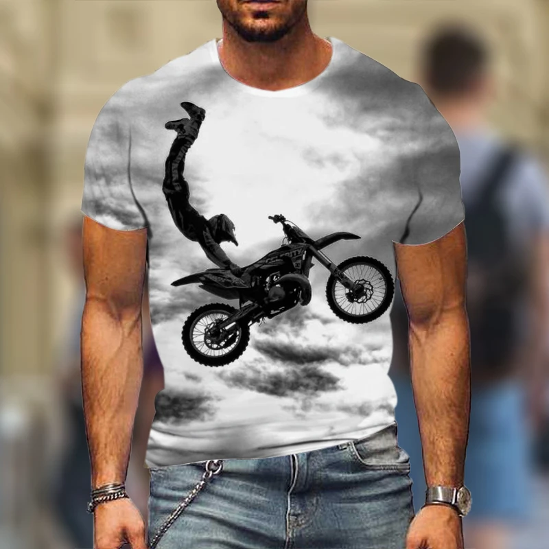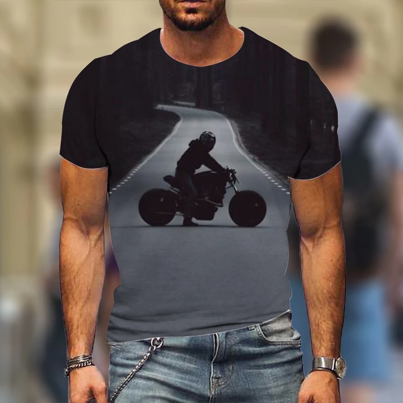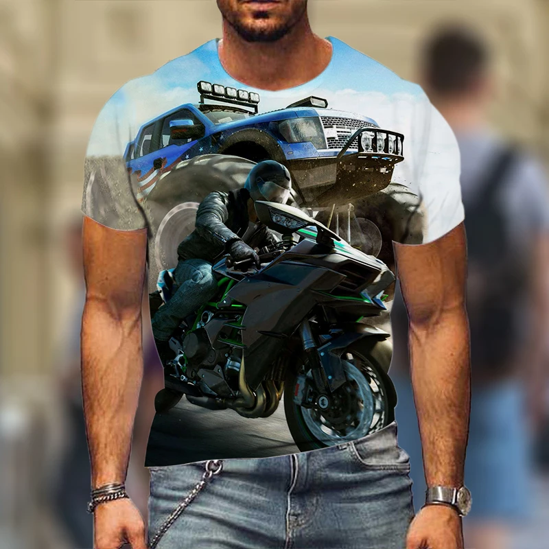 Футболка мужская мотоциклетная с 3D-принтом, Повседневная модная рубашка с коротким рукавом, с локомотивным графическим принтом, летняя уличная одежда