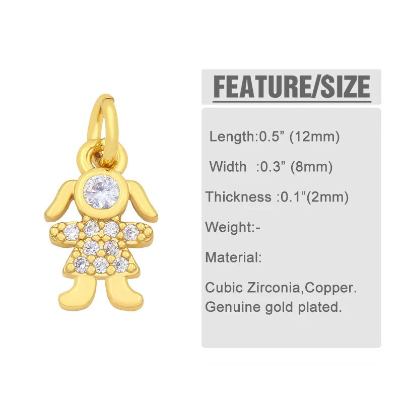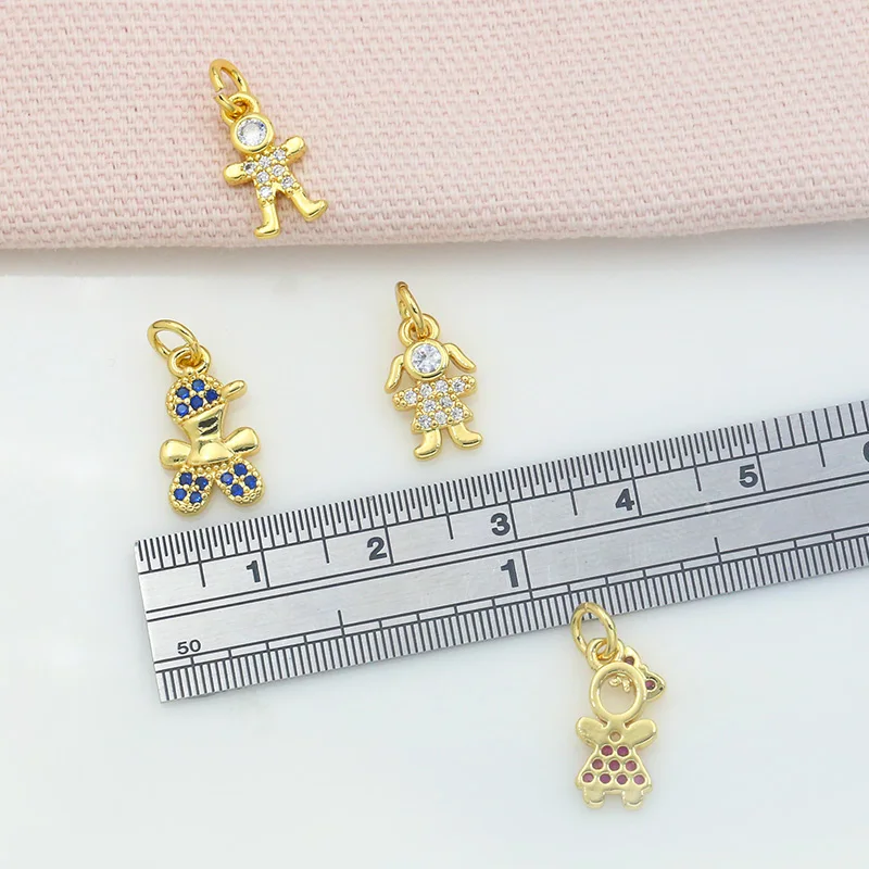 OCESRIO циркон позолоченные принадлежности для изготовления ювелирных изделий мальчик и подвески для девушки серьги CZ Медь мини Шарм для браслета chma087