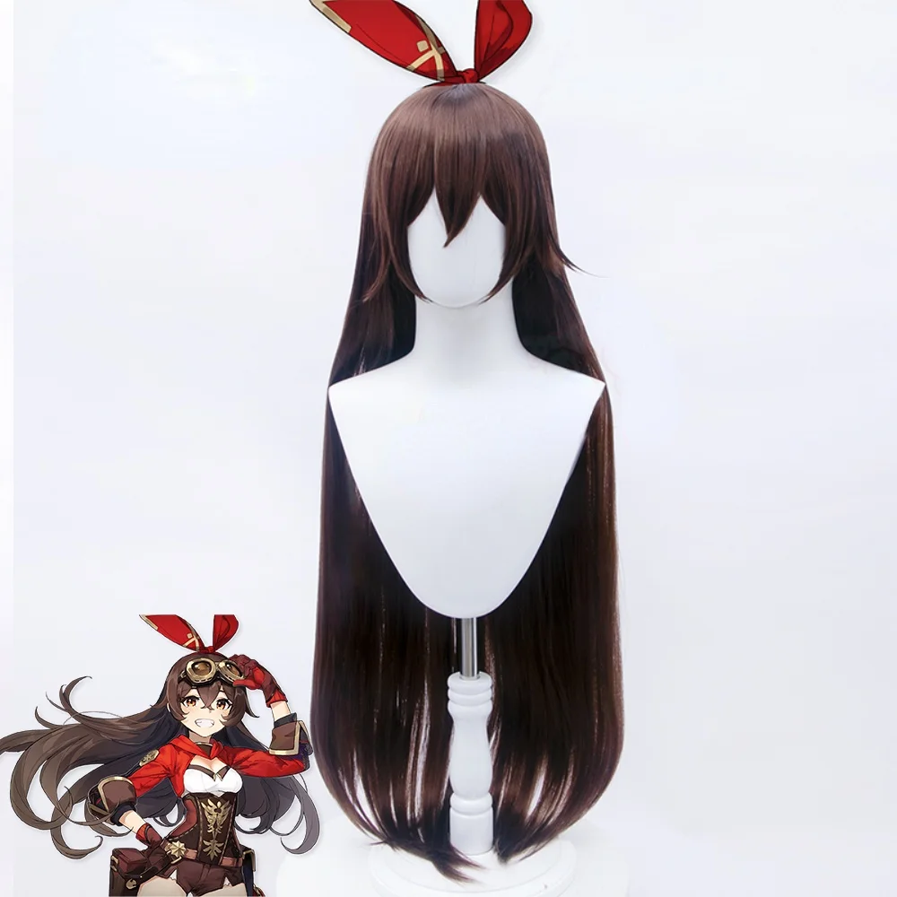 Аниме игра Genshin Impact Косплей Янтарный парик темно-коричневые длинные волосы + Бесплатный подарок брендовый парик Кепка