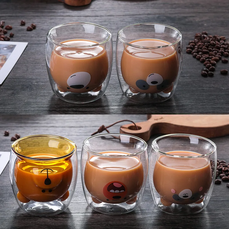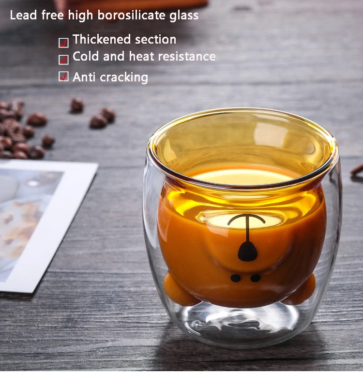 Стеклянная кружка с двойными стенками, 270 мл, кружки в форме мишки, чашка для чая, кружка для молока, посуда для напитков, детская чашка для влюбленных, кофейная чашка, кружка, горячая чашка в подарок
