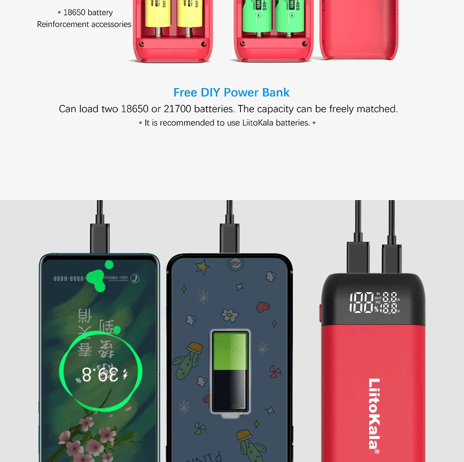 LiitoKala Lii-MP2 18650 21700 ladegerконтакт и внешний аккумулятор ...