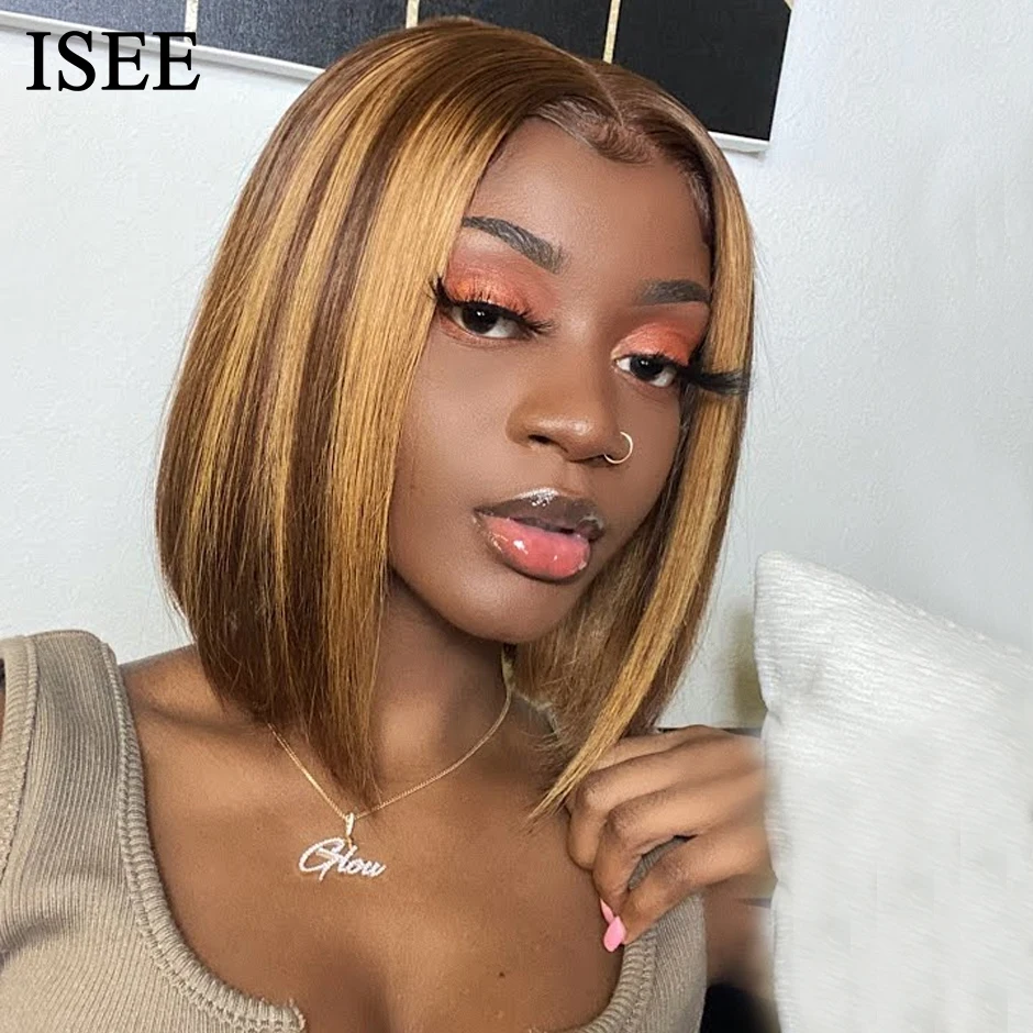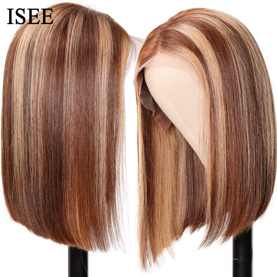 ISEE волосы хайлайтер боб парик малайзийские прямые кружевные парики человеческие волосы короткие волосы боб Омбре парик кружевной передний парик для женщин