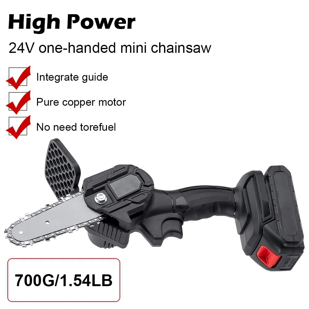 4-дюймовая Мини электрическая бензопила 24 в 2000 мАч аккумуляторная батарея садовая Обрезка дерева электроинструменты с 4 шт заменяемые цепи