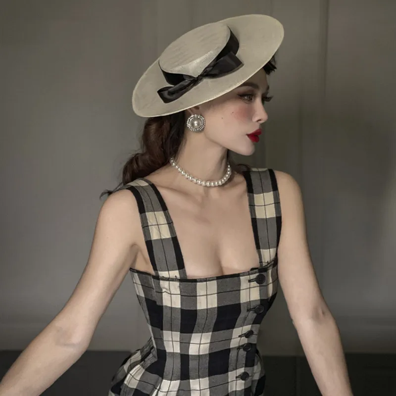 Винтажное 2021 оригинальное новое осеннее модное сарафан в клетку женское элегантное пикантное тонкое платье для офиса для женщин