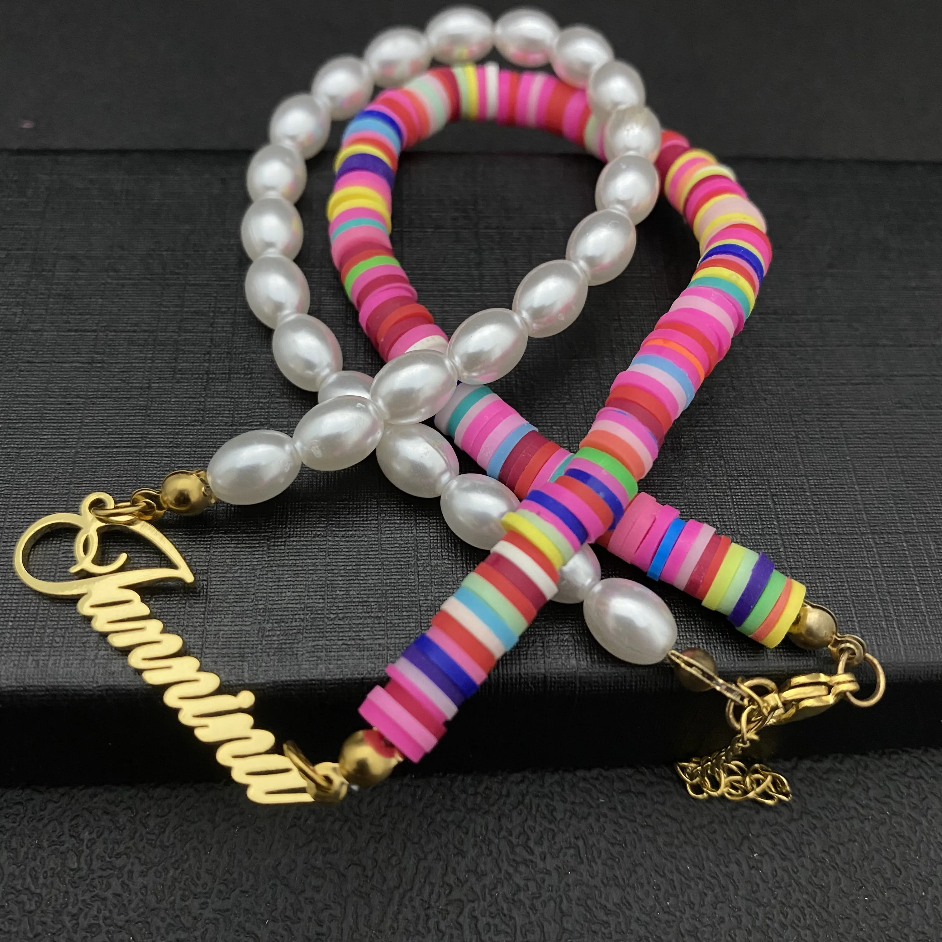 Жемчужные браслеты с именем на заказ, браслет с именем, цепочка из ...