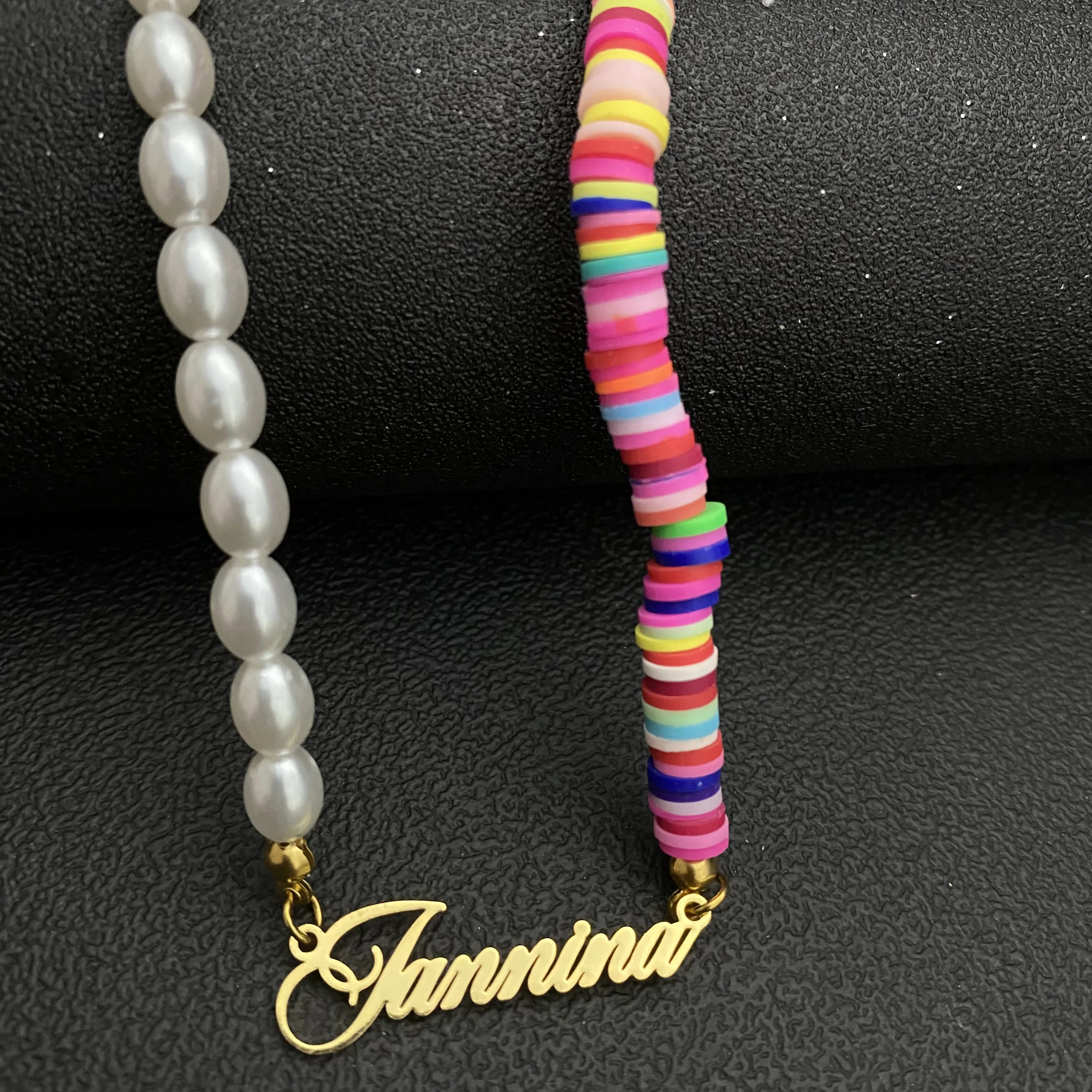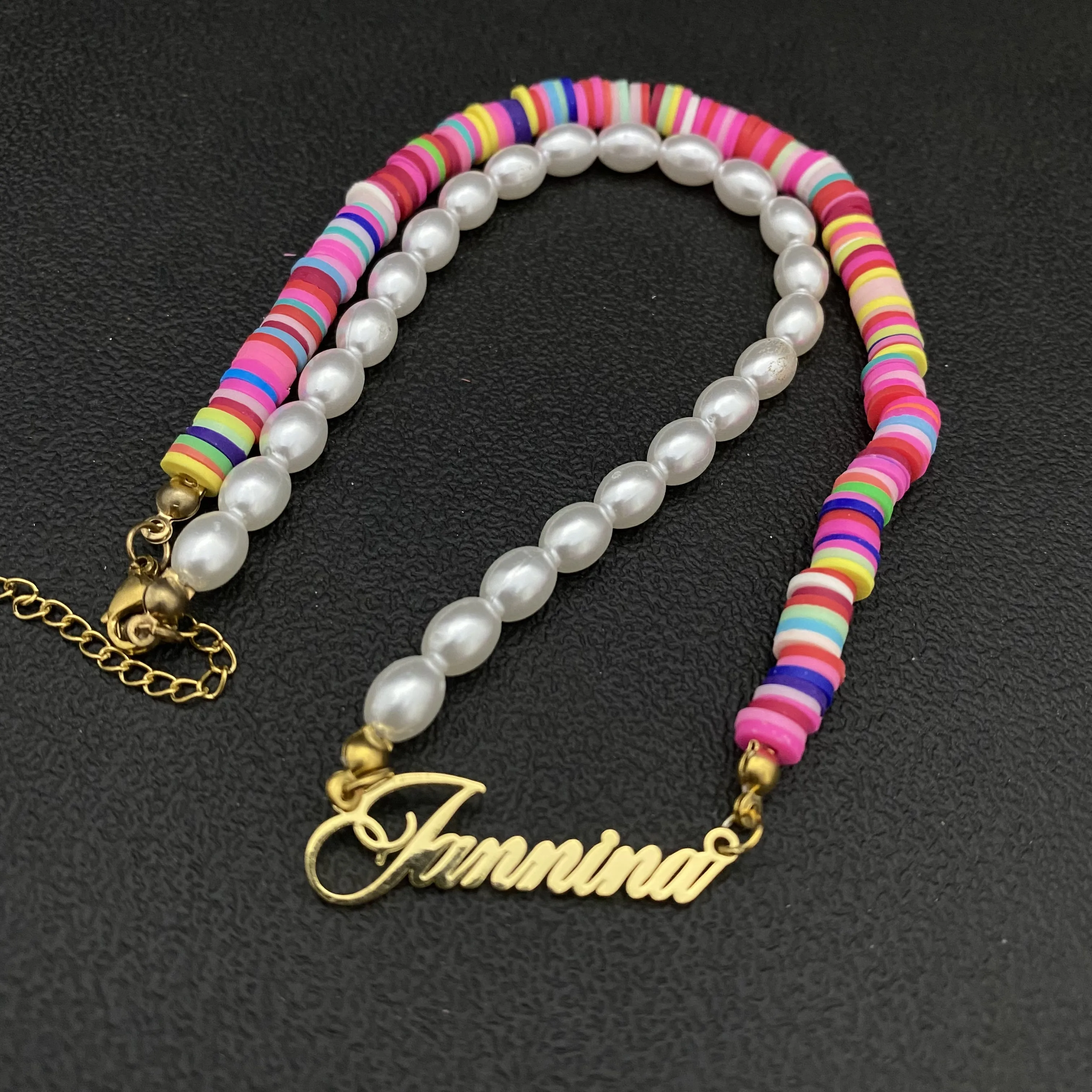 Жемчужное ожерелье с именем под заказ, ожерелье из Жемчужной глины,...