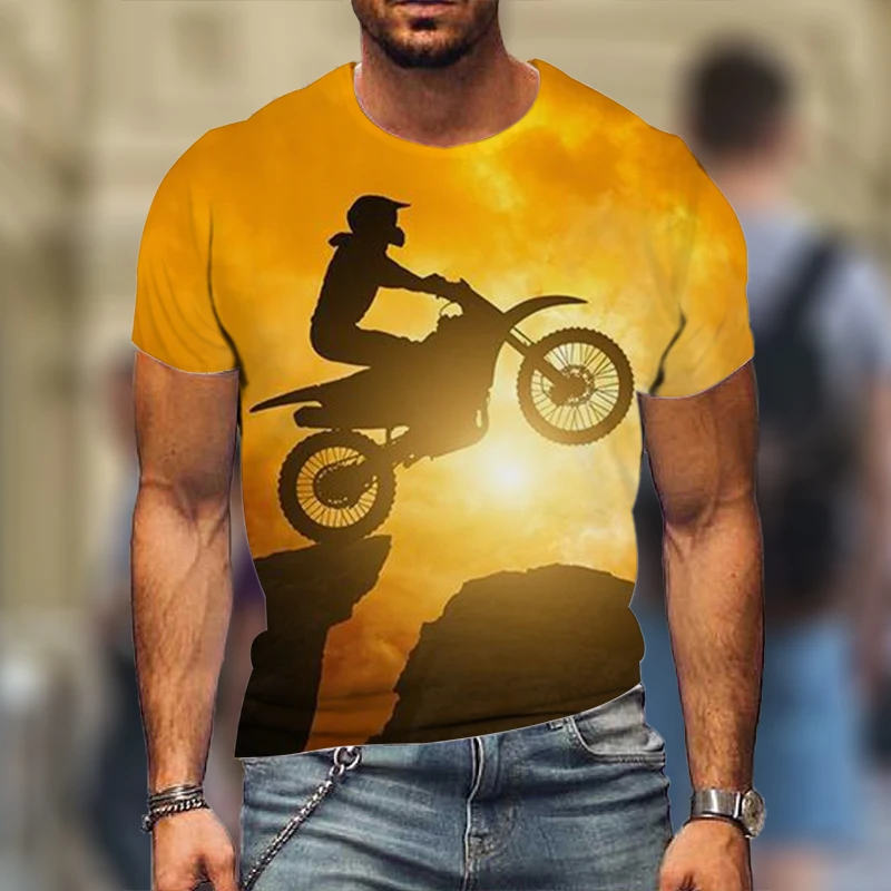 Футболка мужская мотоциклетная с 3D-принтом, Повседневная модная ру...