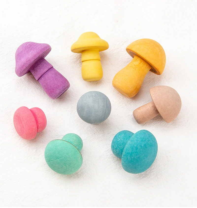 Деревянные игрушки Монтессори, детские цветные грибы в форме размер...