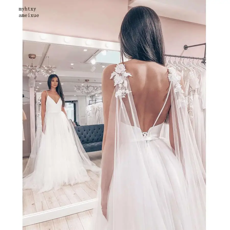 Платье Свадебное на тонких бретельках с V-образным вырезом и открыт...