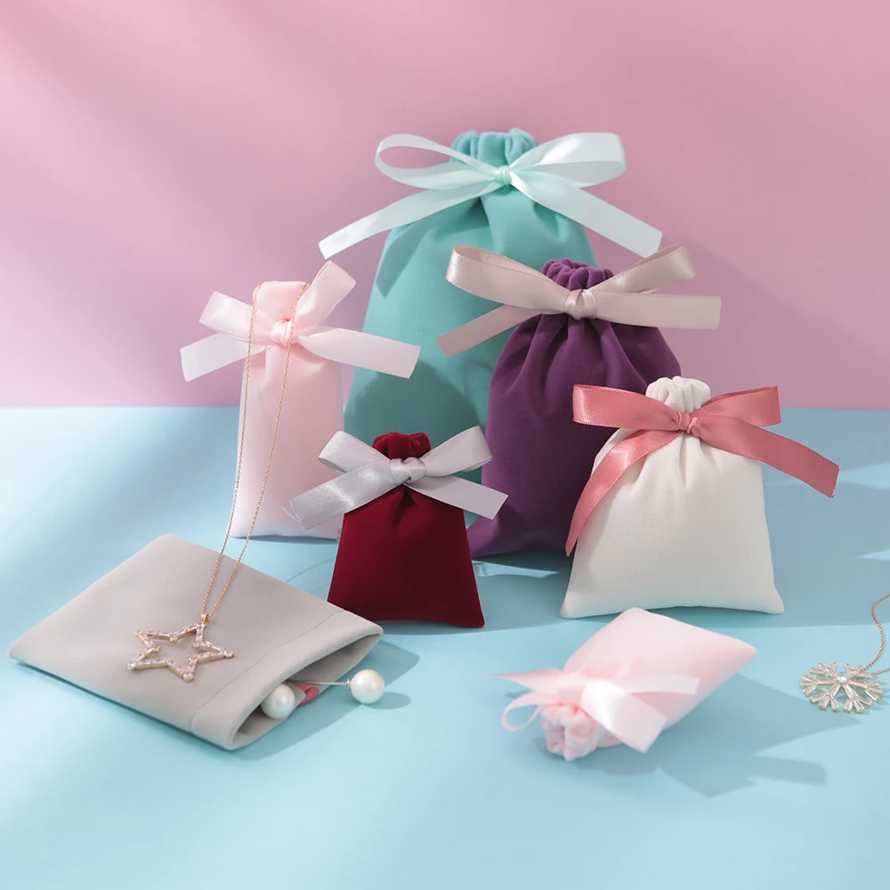 50 шт ювелирных изделий толстые бархатные сумки с лентой могут специально логотип, но эта ссылка не включает плату за печать, если вам нужен логотип печати, пожалуйста, свяжитесь с нами, оплатите дополнительно!