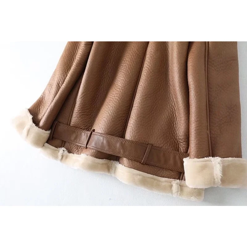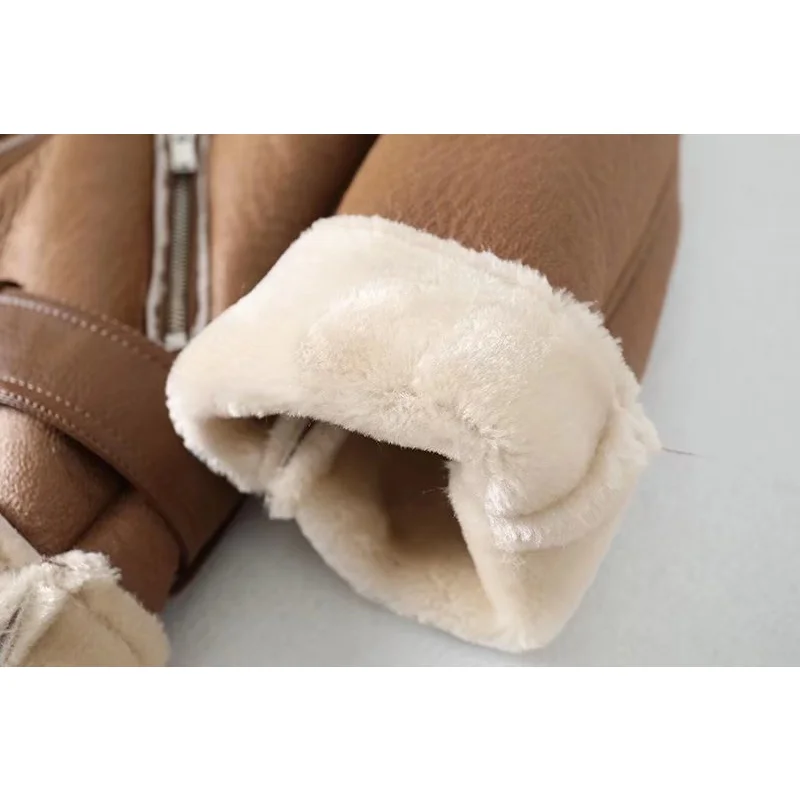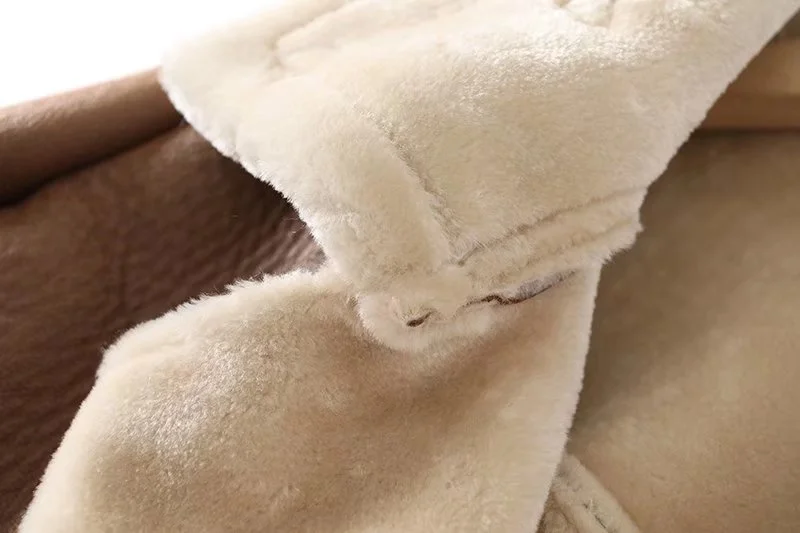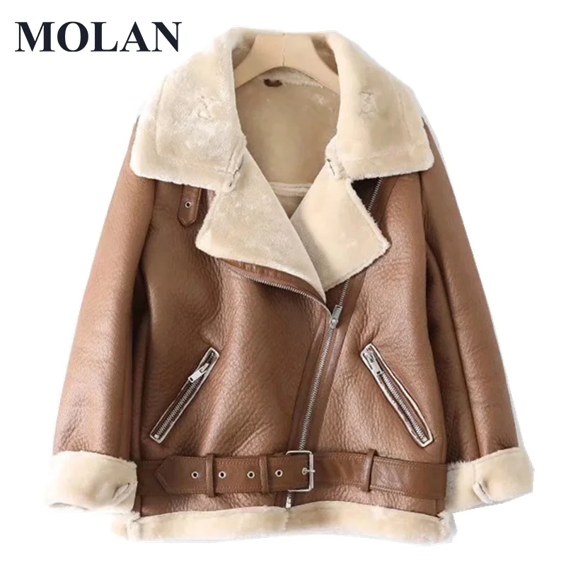 Женская куртка из искусственной кожи MOLAN, зимняя теплая уличная куртка из овечьей шкуры на молнии, однотонная толстая верхняя одежда