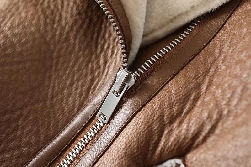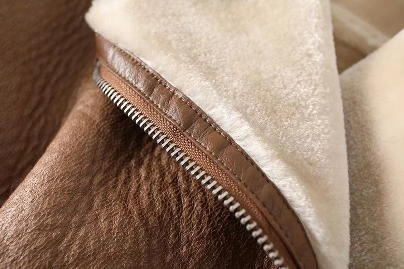 Женское пальто из овечьей кожи, осенне-зимняя кожаная куртка с отло...