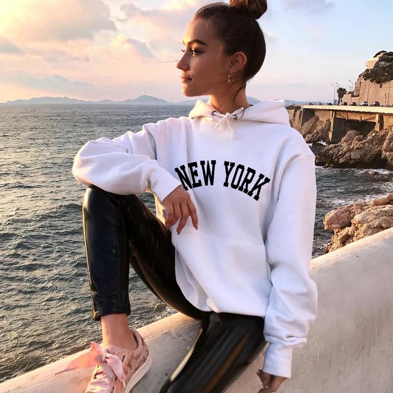 Женские толстовки Harajuku с принтом Нью-Йорка, женские утепленные ...