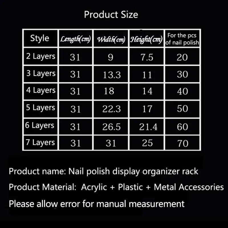 Acrylic Nail Polish Display Organizer2/3/4/5/6/7 Display Layers
