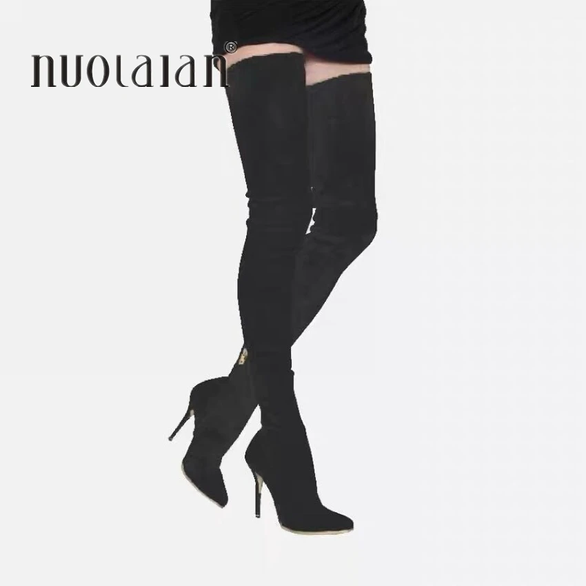2021 Брендовые женские сапоги, модные высокие сапоги на высоком каблуке, облегающие сапоги выше колена, зимние женские сапоги до бедра