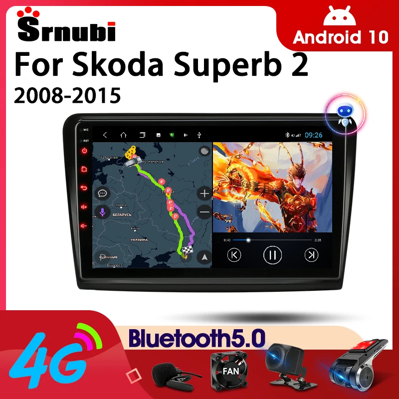 Автомагнитола Srnubi, 2DIN, Android 10, для Skoda Superb 2 B6 2008-2015, GPS-навигация, мультимедийный видеоплеер, 4G, Wi-Fi, Авторадио, DVD
