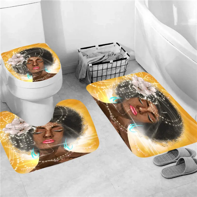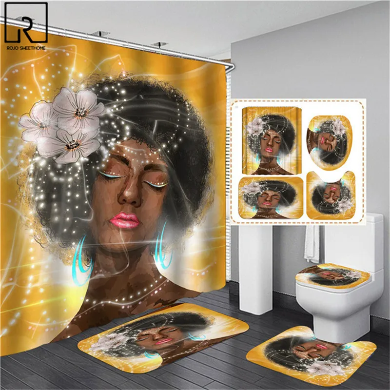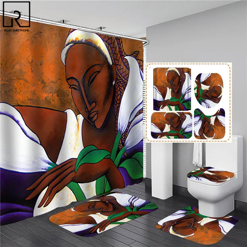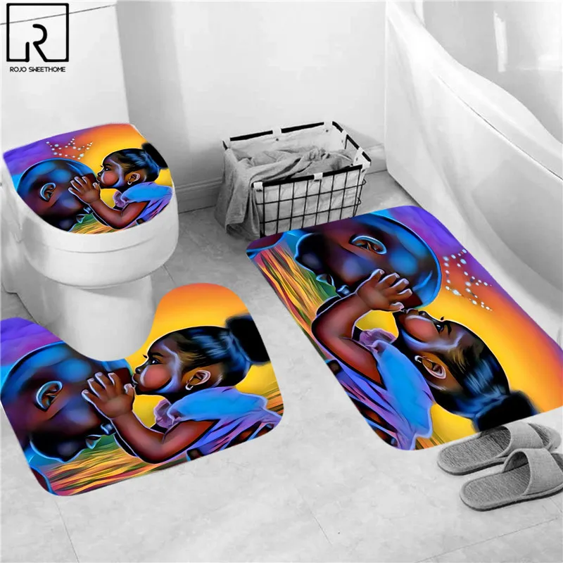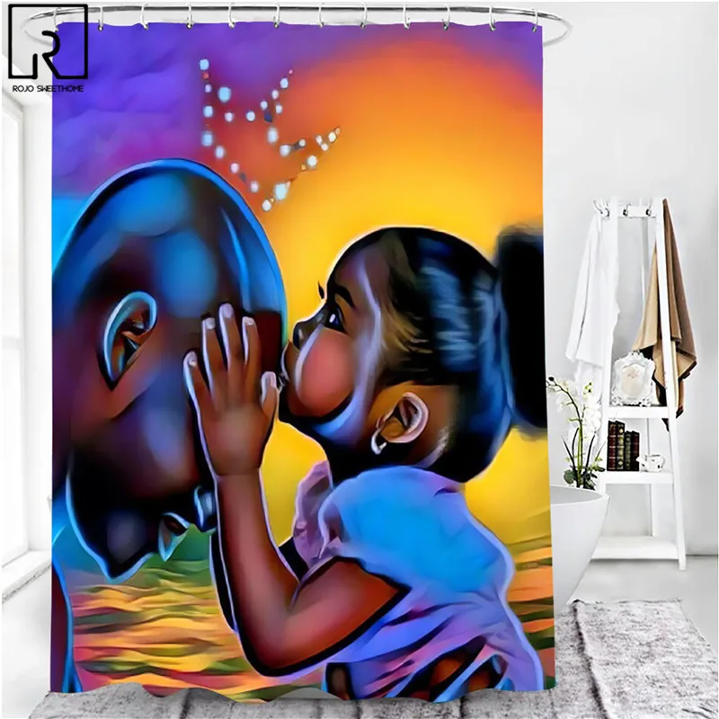 Черная занавеска для душа в американском стиле с принтом отца и дочери, занавеска для ванной комнаты в африканском стиле для женщин, занавеска для ванной, коврик для ванной, крышка для туалета, ковер для унитаза
