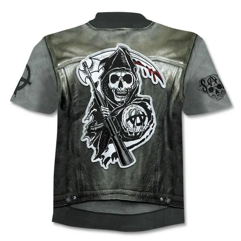 Футболка Мужскаяженская с 3D-принтом черепа и мотоцикла, Модный пул...