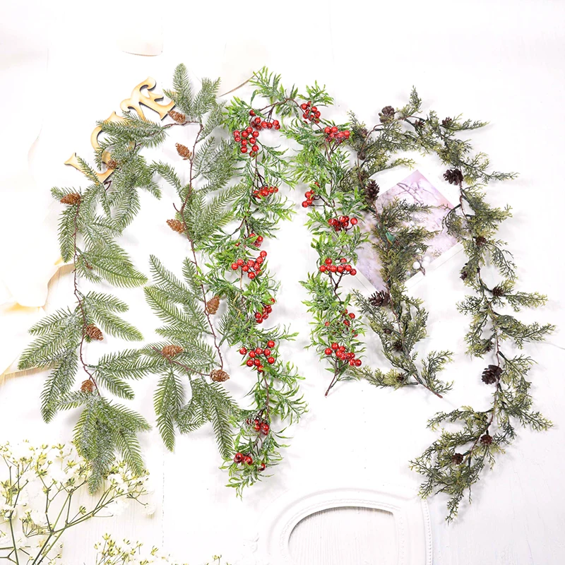 150 см креативные Рождественские цветы, лоза, красные ягоды, сосна,...