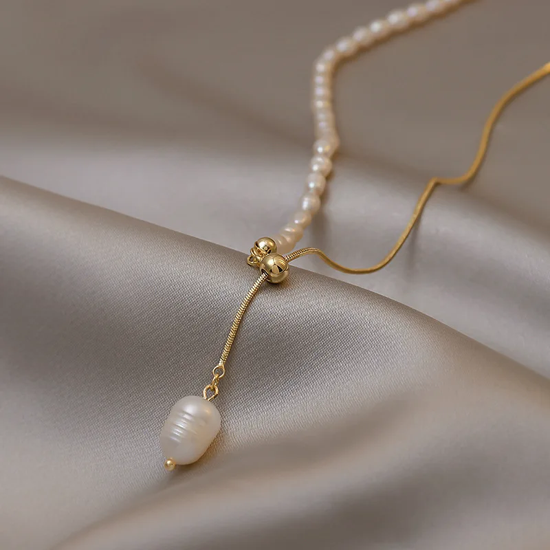 Цепочка Из Нержавеющей Стали с жемчугом женская, элегантное ожерелье под шею, пикантная бижутерия в Корейском стиле, 2021