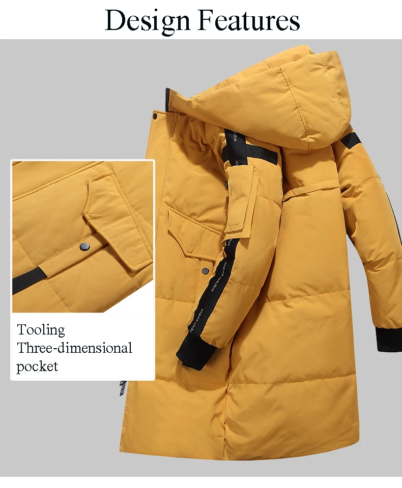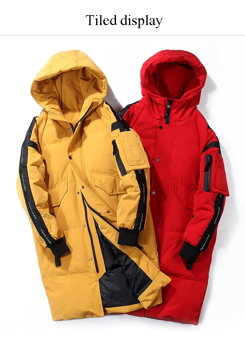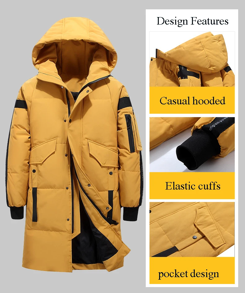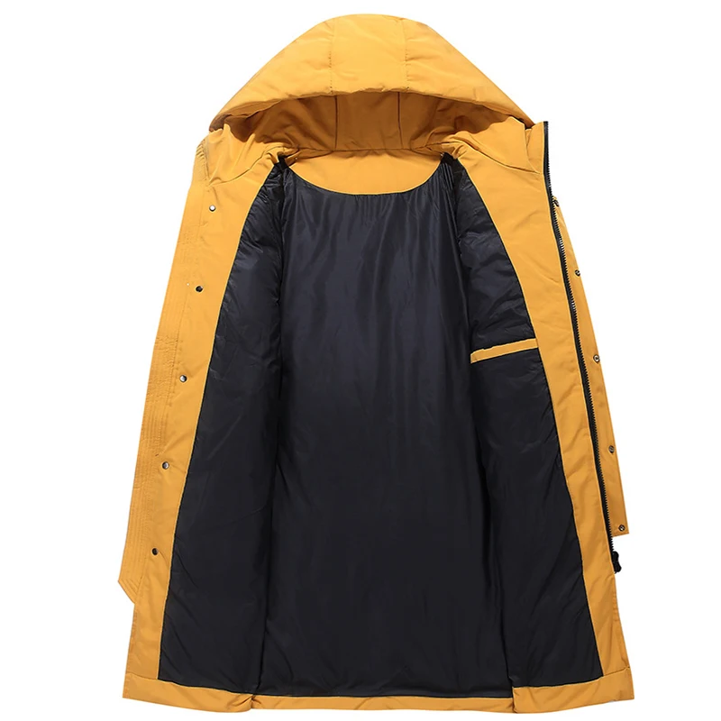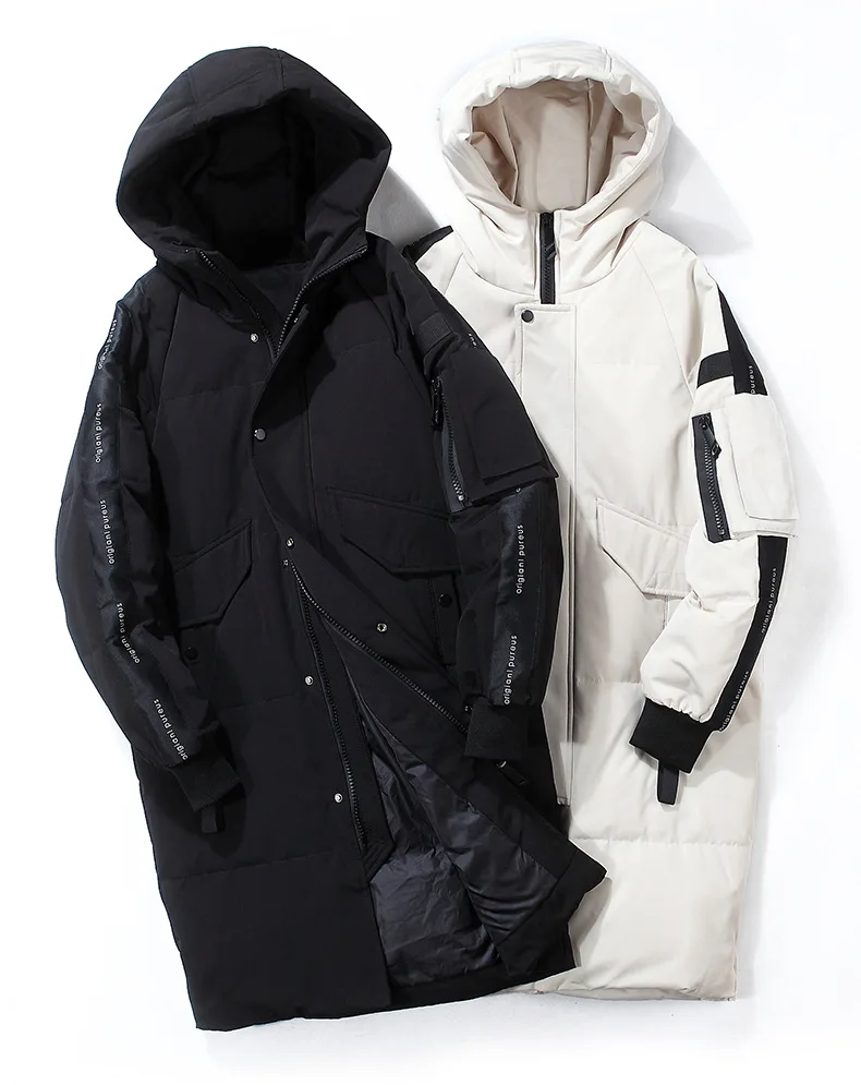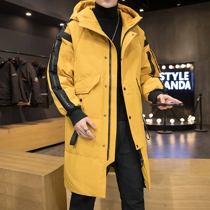 Новинка, зимний мужской пуховик с капюшоном, Одноцветный, длинный, плотный, теплый, свободный пуховик, мужские, повседневные, ветрозащитные, дышащие парки
